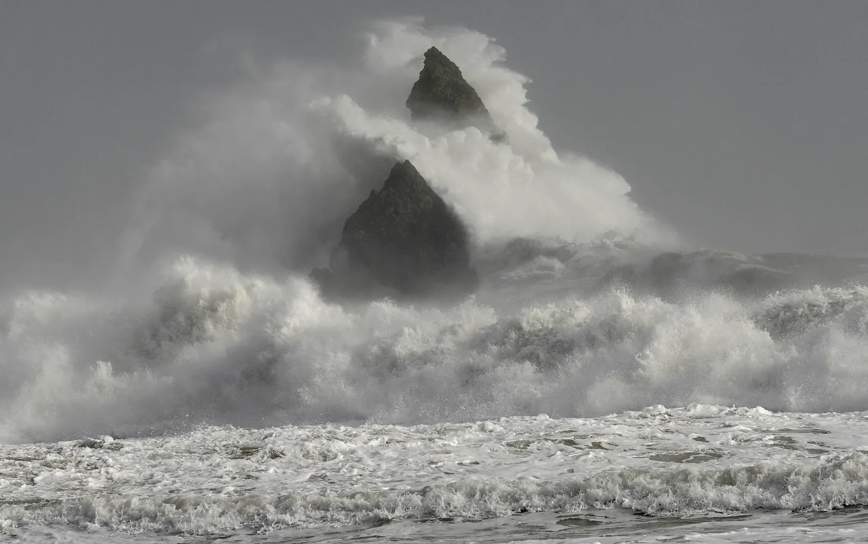 Large waves crash over Church Rock as hurricane force winds reach the coastline at Broad Haven, Pembrokeshire, Wales, February 12, 2014. (Photo by Rebecca Naden/Reuters)