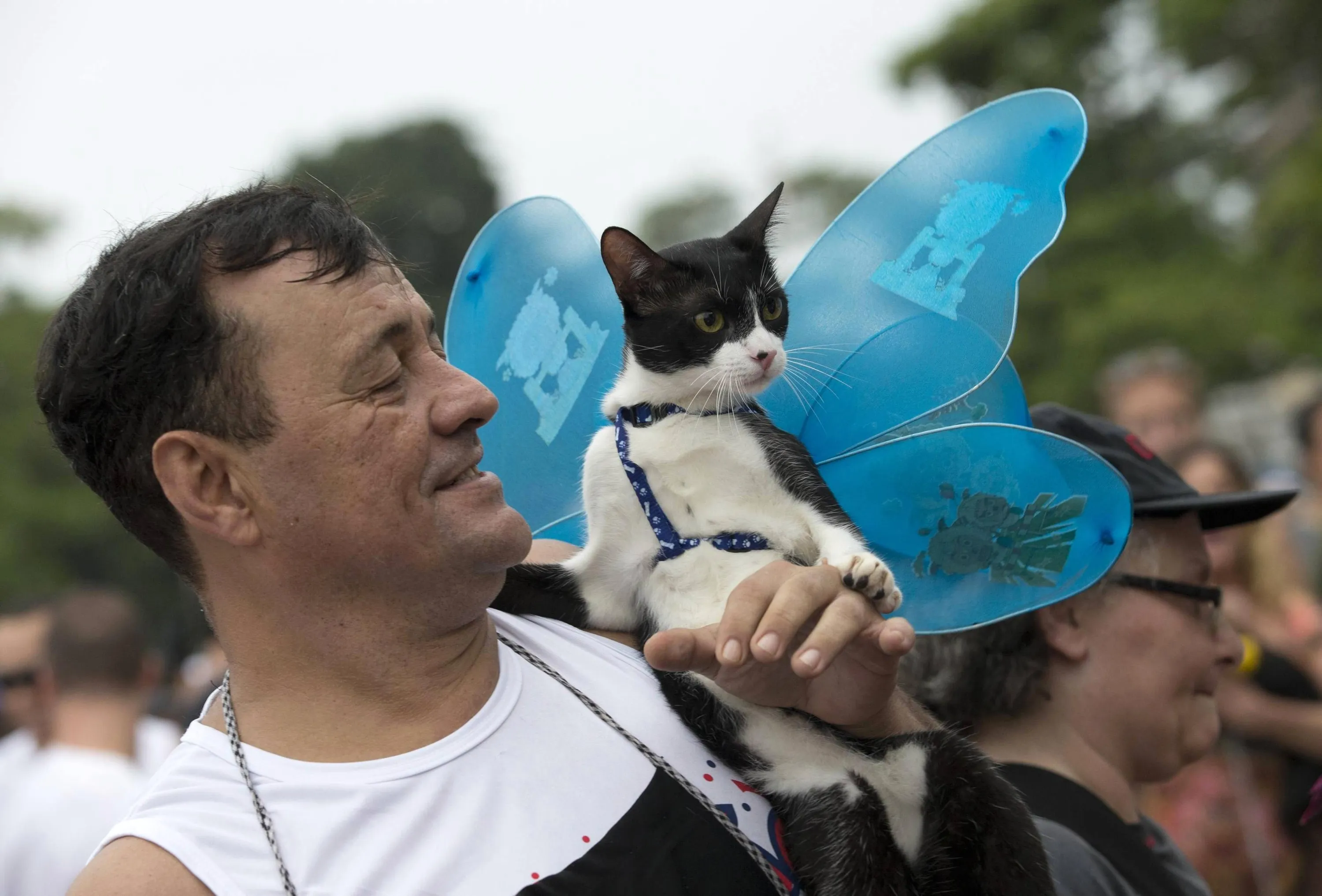 A man and his cat attend the “Blocao” dog carnival in Rio de Janeiro, Brazil, Sunday, February 16, 2014. (Photo by Silvia Izquierdo/AP Photo)