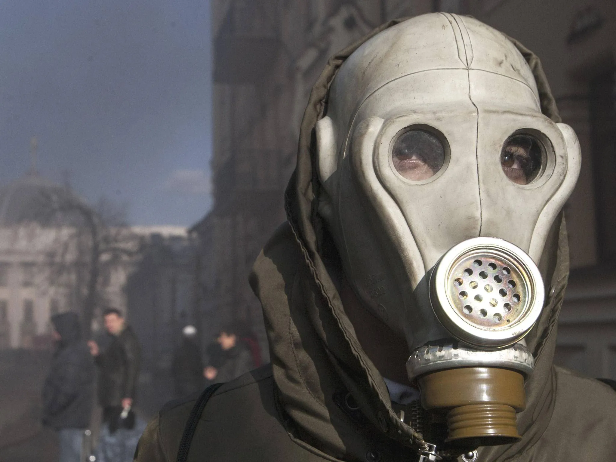 An anti-government protester wears a gas mask during clashes with Interior Ministry members in Kiev. Several thousand anti-government protesters clashed with police near Ukraine's parliament torching vehicles and hurling stones in the worst violence to rock the capital Kiev in more than three weeks. (Photo by Reuters/Stringer)
