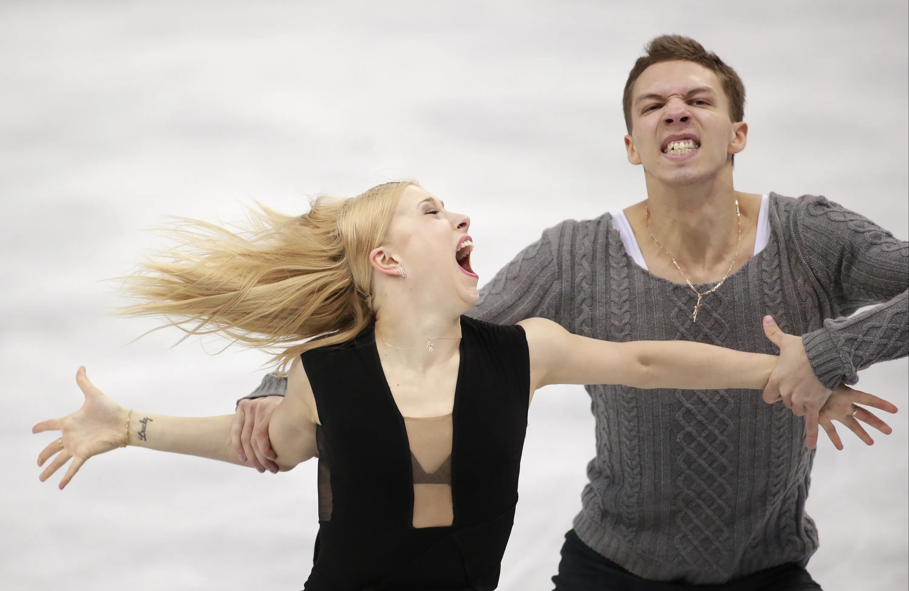 Ekaterina Bobrova and Dmitri Soloviev of Russia compete in the ice dance free dance figure skating finals at the Iceberg Skating Palace during the 2014 Winter Olympics, Monday, February 17, 2014, in Sochi, Russia. (Photo by Bernat Armangue/AP Photo)
