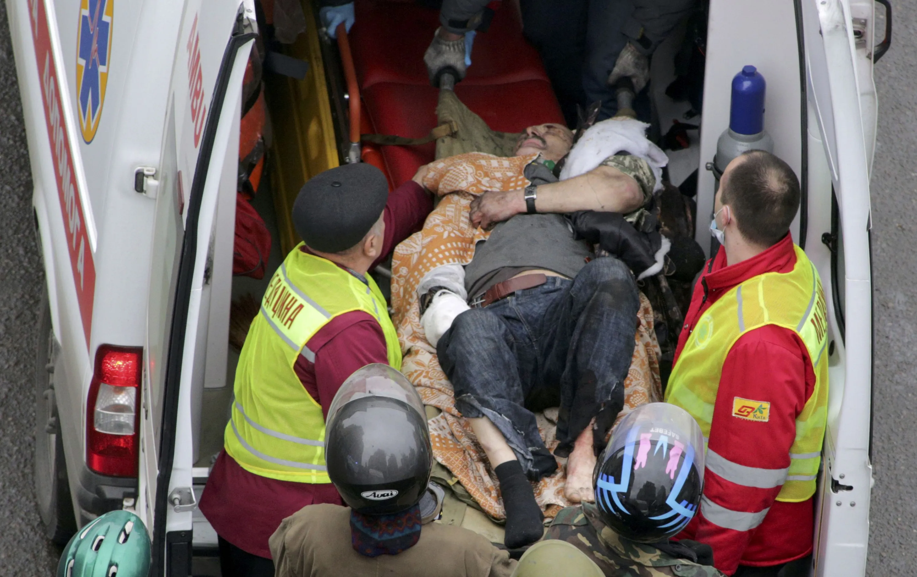 An injured anti-government protester is taken to an ambulance after violence erupted in the Independence Square in Kiev February 20, 2014. (Photo by Konstantin Chernichkin/Reuters)