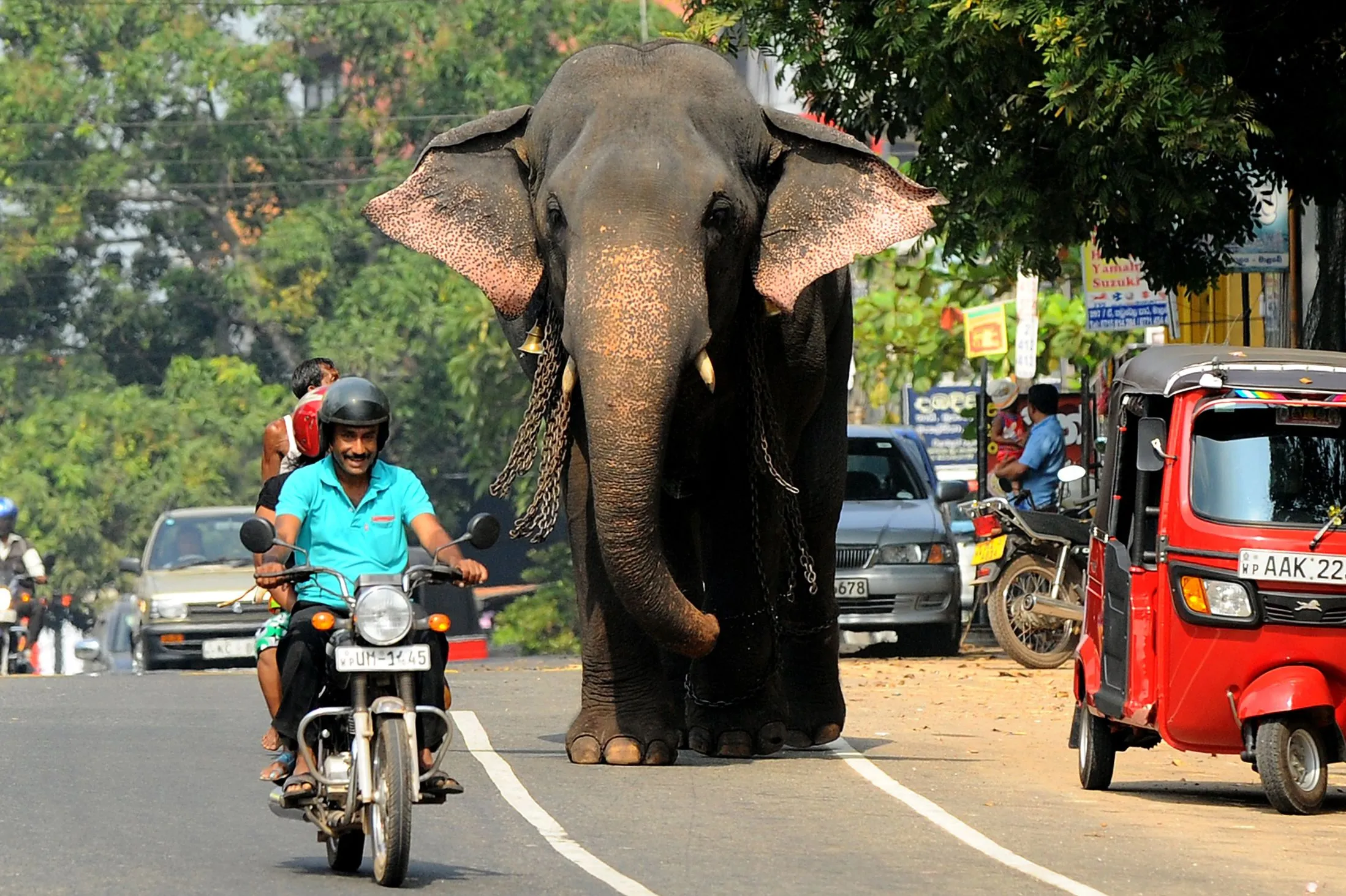 A Sri Lankan elephant walks along a street in Colombo on February 16, 2014. The Sri Lankan elephant is listed as endangered by the International Union for Conservation of Nature (IUCN) as the population has declined by at least 50% over the last three generations, with the species threatened by habitat loss, degradation and fragmentation. (Photo by Ishara S. Kodikara/AFP Photo)