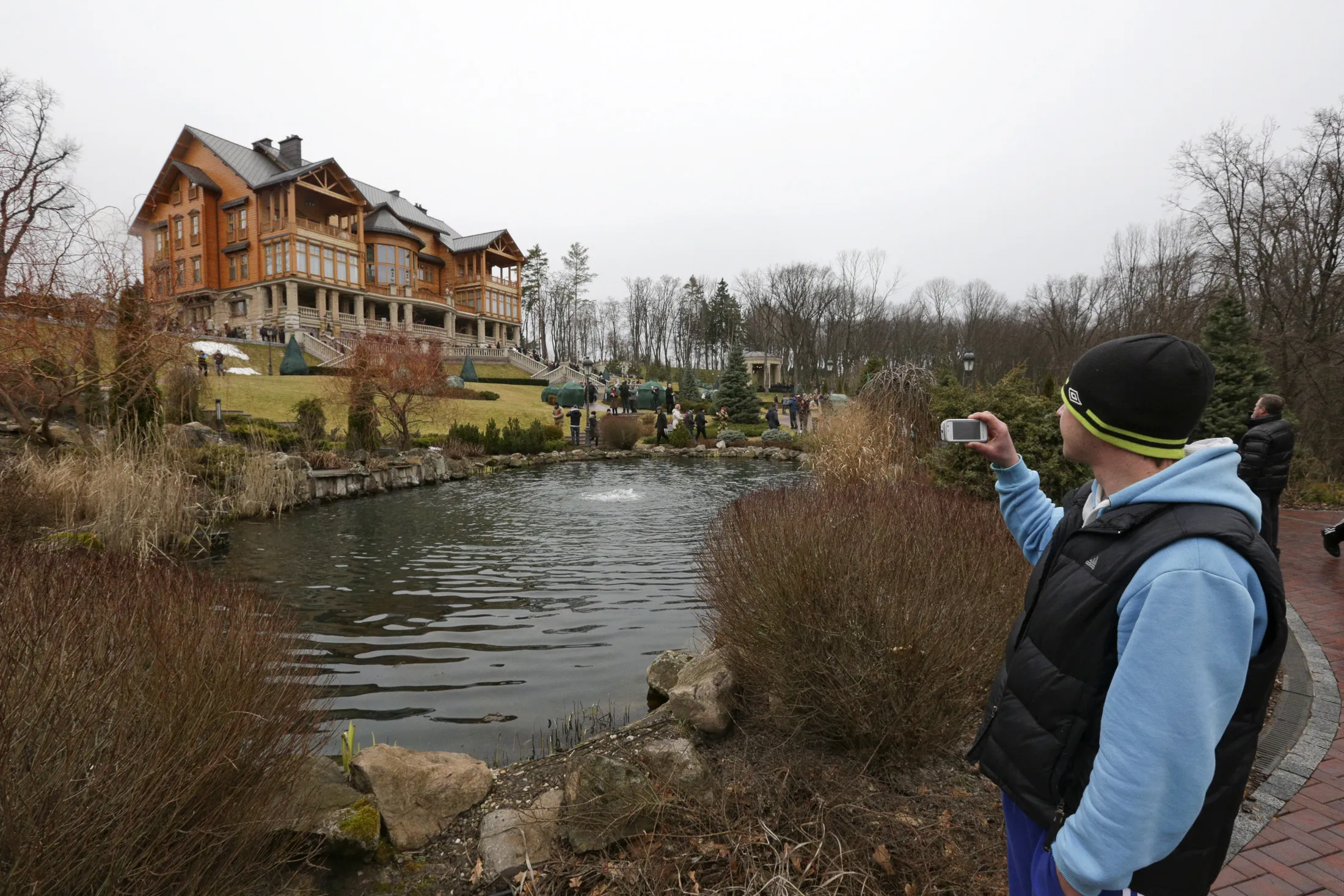 A man takes pictures as anti-government protesters and journalists walk on the grounds of the Mezhyhirya residence of Ukraine's President Viktor Yanukovich in the village Novi Petrivtsi, outside Kiev February 22, 2014. (Photo by Konstantin Chernichkin/Reuters)