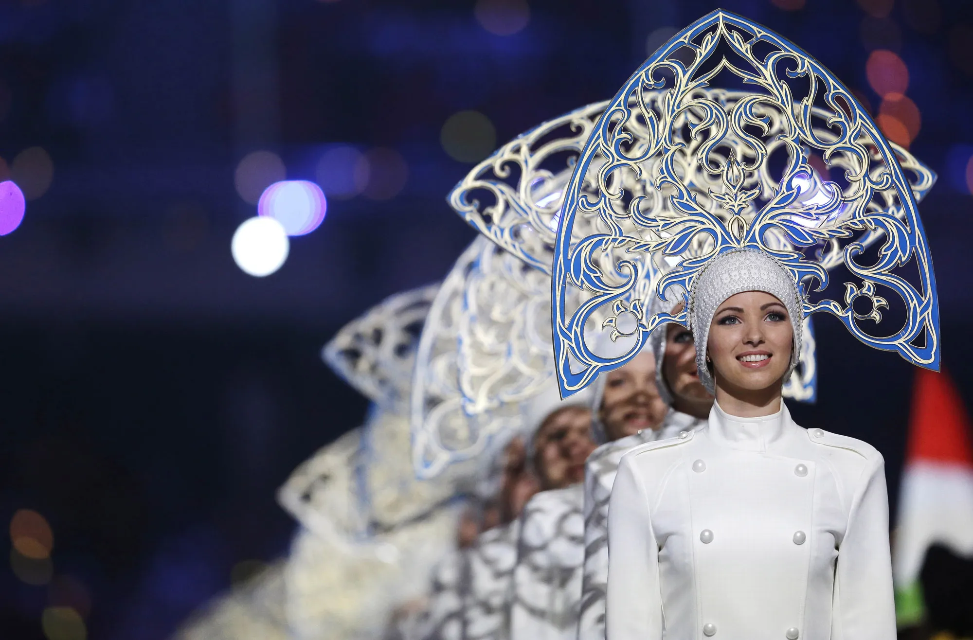 Performers line up during the closing ceremony of the 2014 Winter Olympics, Sunday, February 23, 2014, in Sochi, Russia. (Photo by Darron Cummings/AP Photo)