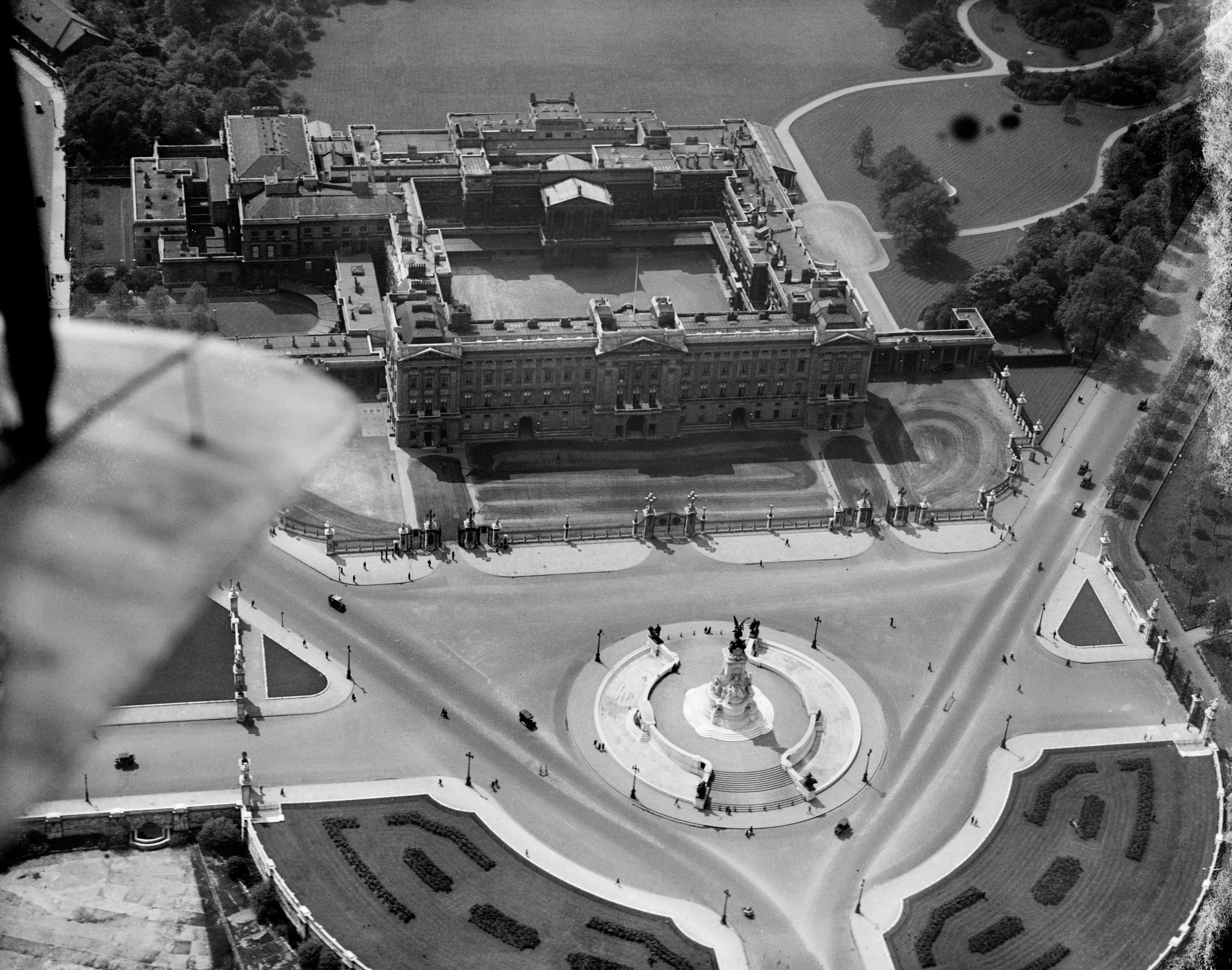 1921 photograph of Buckingham Palace and Queen Victoria memorial. Flight restrictions today would make this a near impossibility. (Photo by US National Archives via “A History of Britain From Above”)