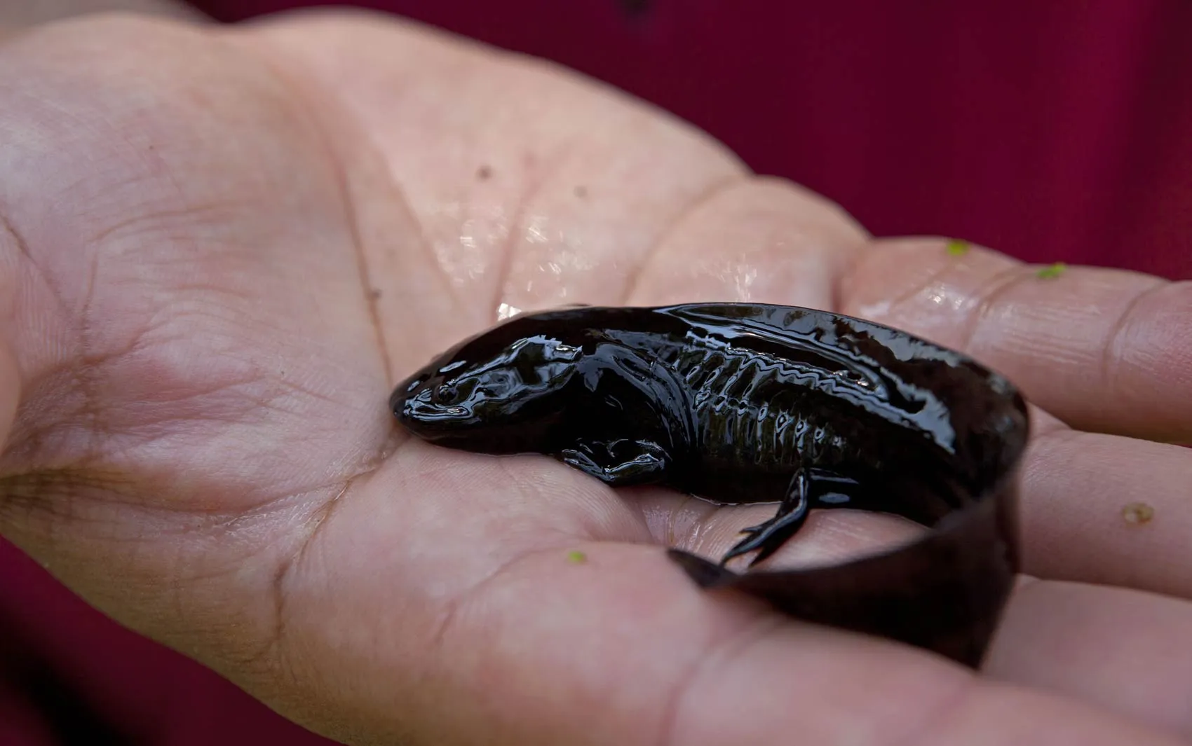 In this Friday, February 21, 2014 photo, Biologist Armando Tovar Garza from Mexico's National Autonomous University holds a young axolotl in his hand at an experimental canal run by the university in the Xochimilco network of lakes and canals in Mexico City. Investigators have begun a search in hopes of finding what may be the last free-roaming axolotl. Not one axolotl was found during last year's effort at finding them in the wild in Xochimilco, their only natural habitat. The axolotl is known as the “water monster” and the “Mexican walking fish”. (Photo by Dario Lopez-Mills/AP Photo)