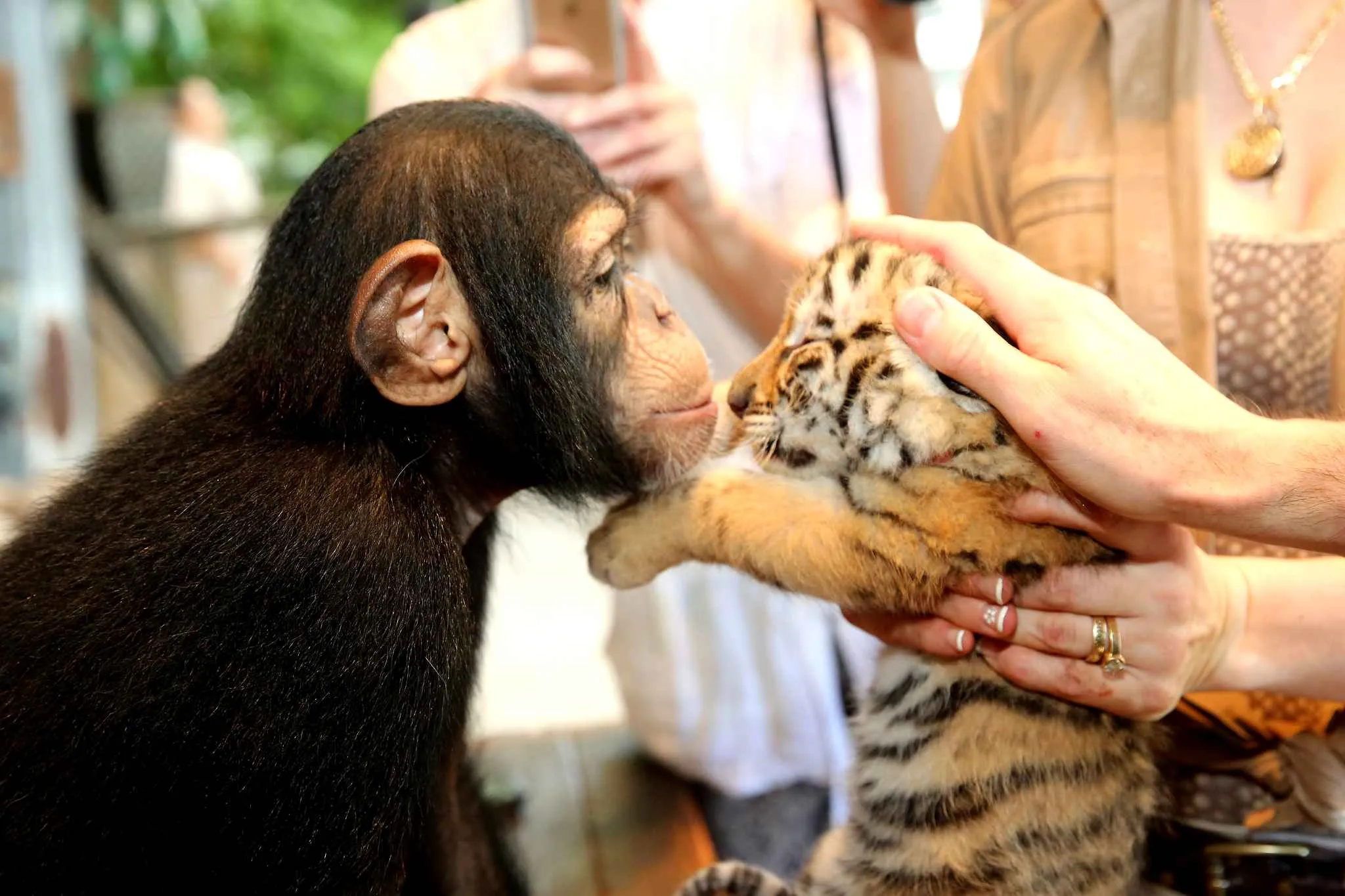 Animals participate in Fun and Fit as a Family sponsored by Carnival featuring Goya Kidz Kitchen hosted by Robert Irvine during the Food Network South Beach Wine & Food Festival at Jungle Island on February 23, 2014 in Miami, Florida. (Photo by Aaron Davidson/Getty Images for Food Network SoBe Wine & Food Festival/AFP Photo)