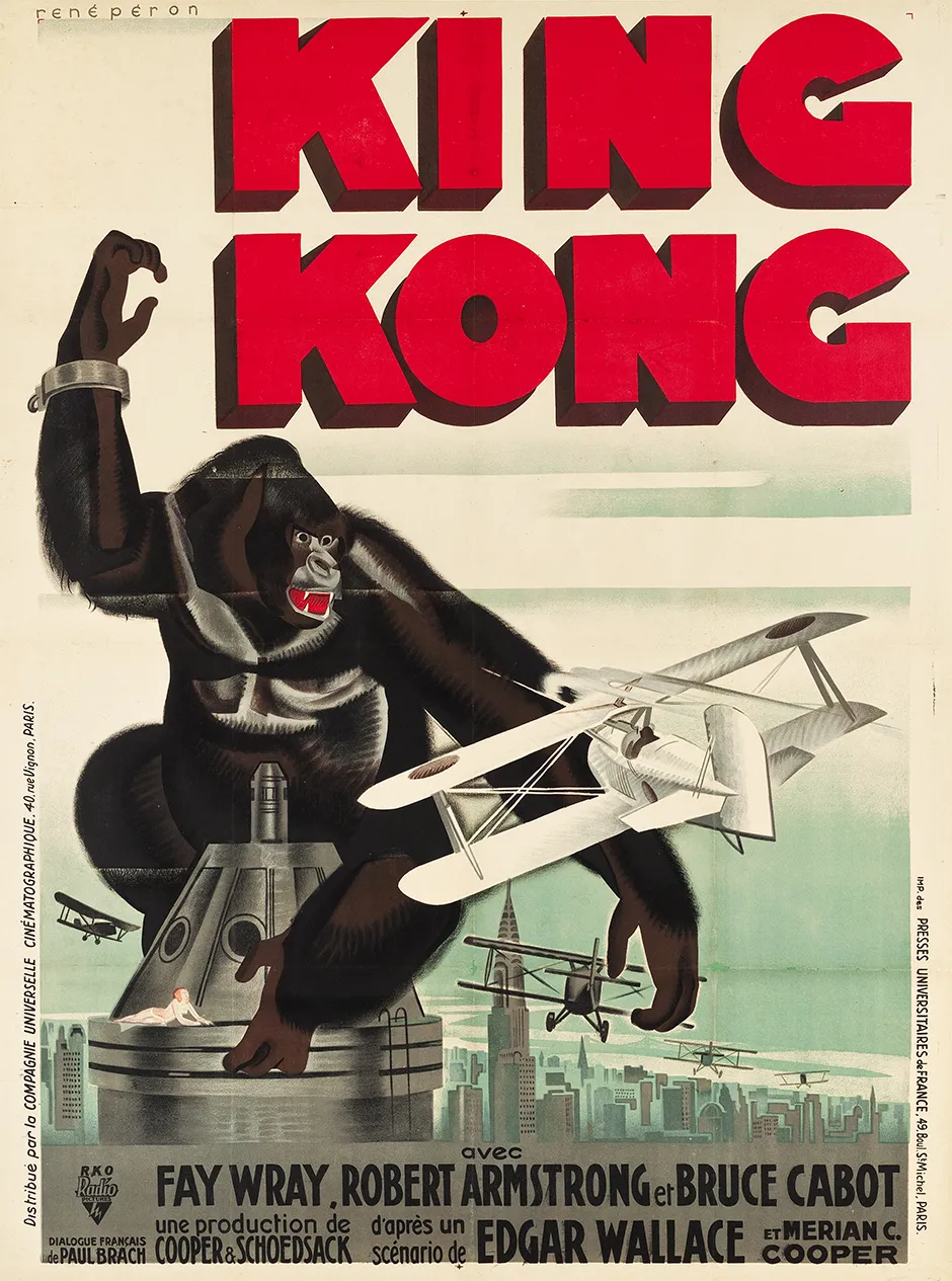 King Kong (RKO, 1933). French Grande (47" X 62.5") Style B - Rene Peron Style. King Kong is recognized the world over as one of the greatest monster films ever created, thanks to its landmark special effects that would introduce a whole new dimension to movie making. Estimate: $15,000 - $30,000. (Photo by Courtesy Heritage Auctions)