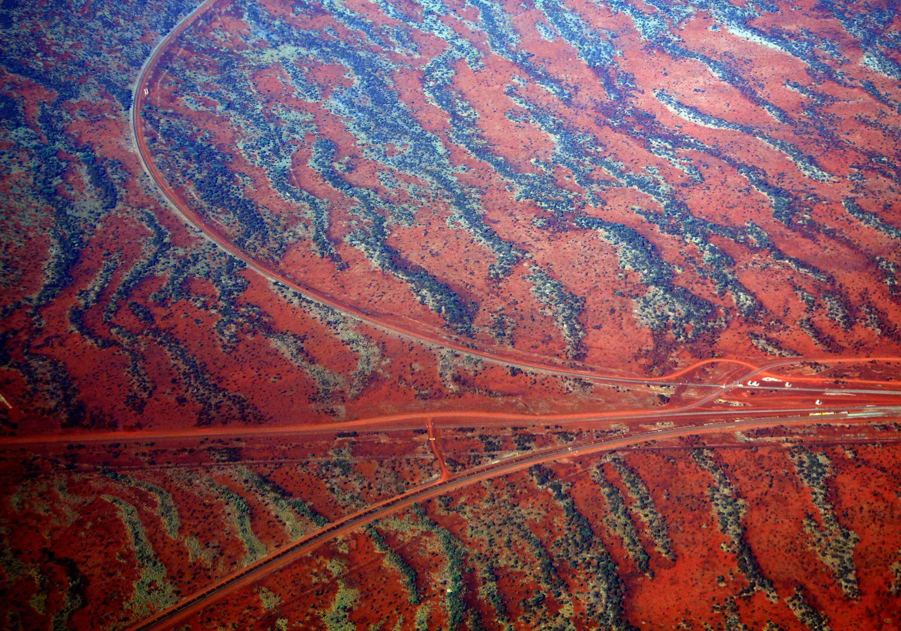 Roads go off in various directions next to sand dunes covered in vegetation in the Pilbara region of Western Australia December 2, 2013. (Photo by David Gray/Reuters)