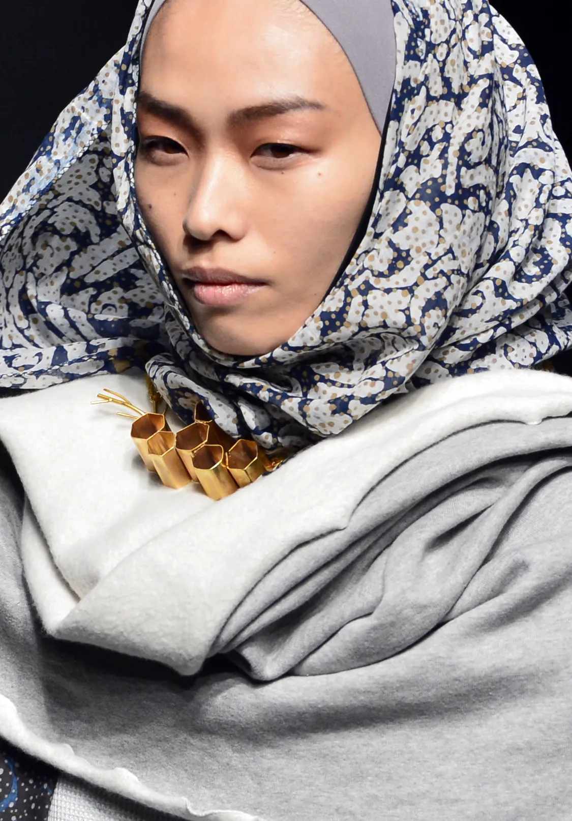 A model presents a creation by Indonesian designer Windri Widiesta Dhari for Nur Zahra during the Mercedes-Benz Fashion Week in Tokyo, Japan, March 19, 2014. The presentation of the Autumn/Winter 2014-15 collections runs from March 17 to 22. (Photo by Tomoyuki Kaya/EPA)