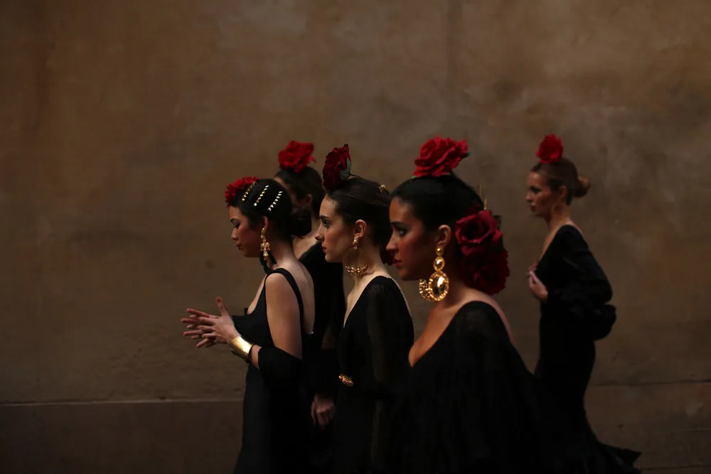 Models wearing flamenca dresses head to an event to mark the twentieth anniversary of the International Flamenco Fashion Show in Seville, Spain, on March 27, 2014. (Photo by Marcelo del Pozo/Reuters)