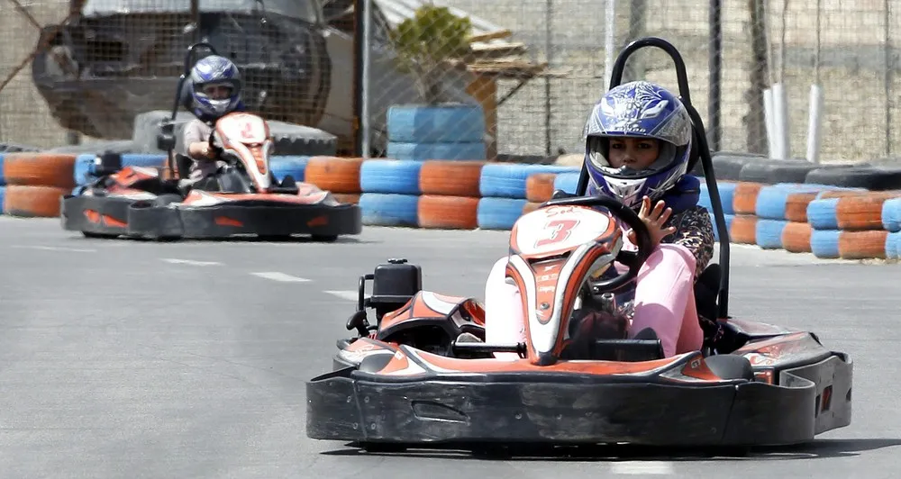 An Iranian girls drive carts at the Frassa carting track in Oshan, northern Iran, 27 March 2014. Following the presidency of Hassan Rowhani and the increase of social liberties young people, also girls have more entertainment facilities. (Photo by Abedin Taherkenareh/EPA)