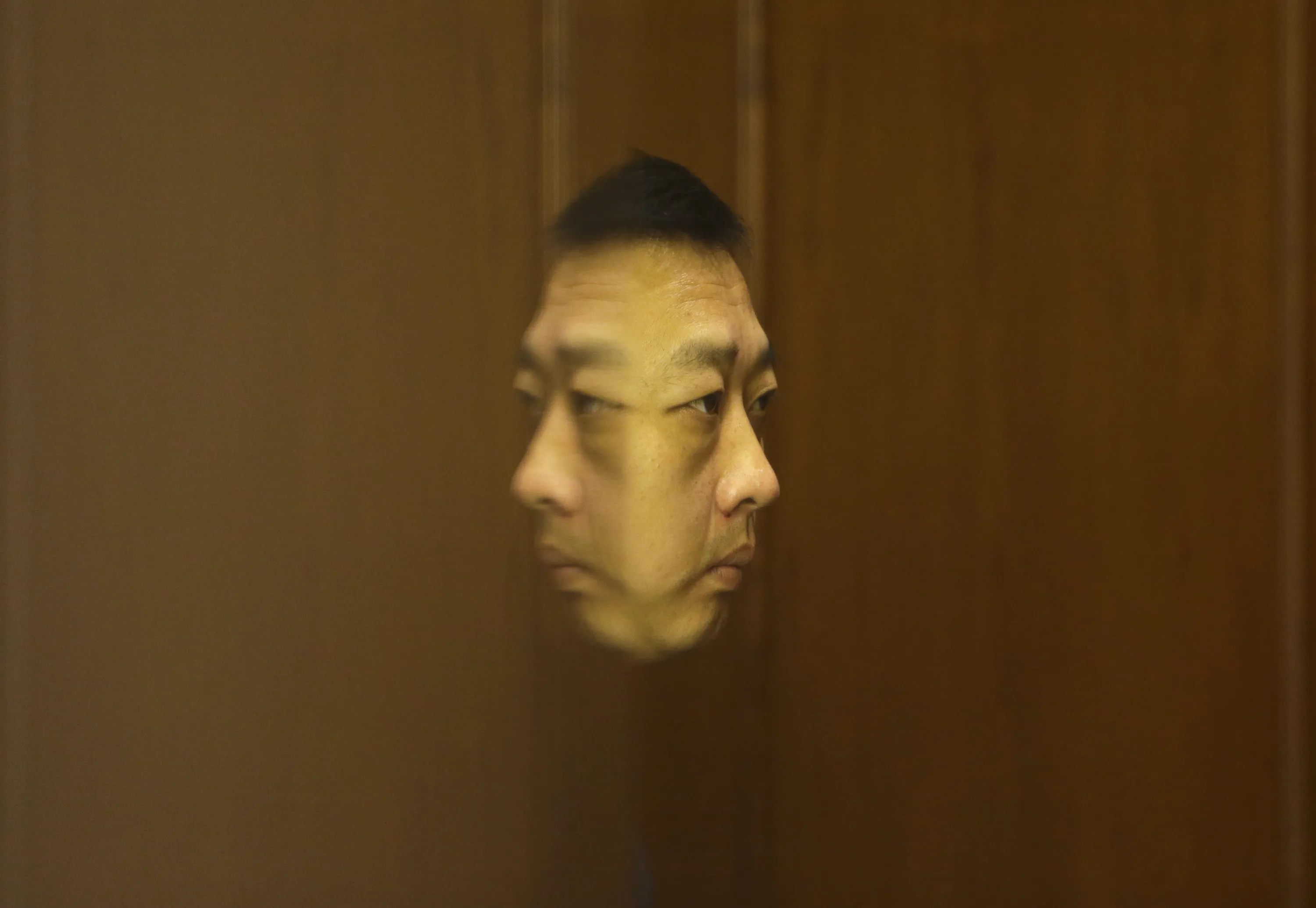 A hotel security personnel sits next to an entrance of a meeting hall, the venue of a routine briefing given by Malaysia's government and military representatives at Lido Hotel in Beijing March 23, 2014. Australia's prime minister said on Sunday there was “increasing hope” of a breakthrough in the hunt for a missing Malaysian airliner carrying 239 people, after Chinese satellite images showed what could be debris within a search area deep in the southern Indian Ocean. (Photo by Jason Lee/Reuters)