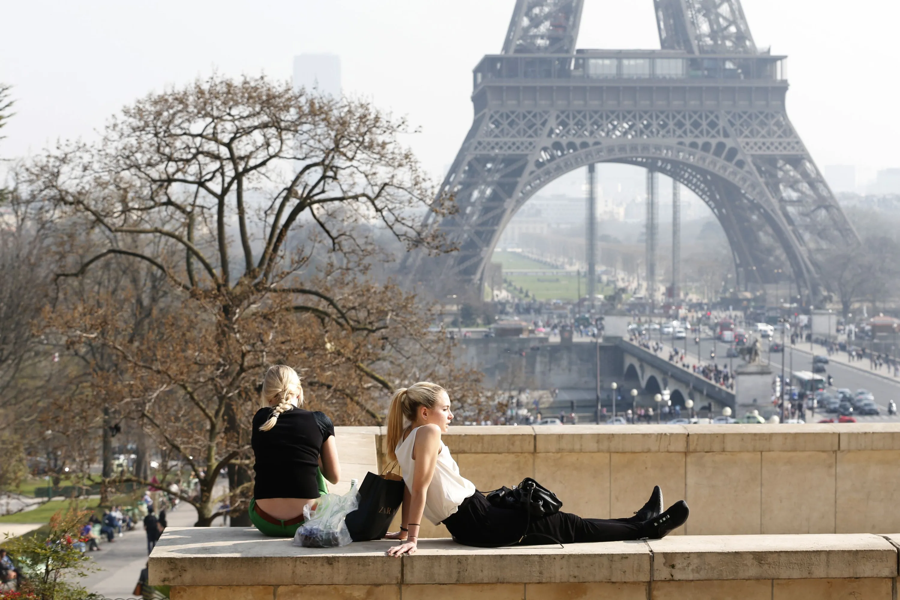 Tourists enjoy the sunny weather in front of the Eiffel tower in Paris, March 14, 2014. (Photo by Charles Platiau/Reuters)