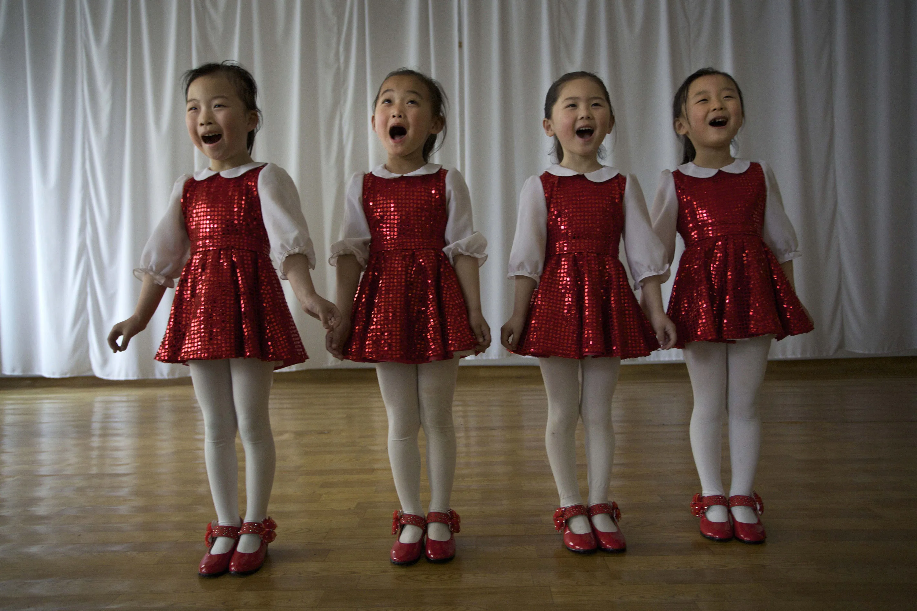 North Korean children perform at the Kaeson Kindergarten in Pyongyang, North Korea, April 27, 2012. For North Koreans, the systematic indoctrination of anti-Americanism starts as early as kindergarten and is as much a part of the curriculum as learning to count. (Photo by Vincent Yu/AP Photo)