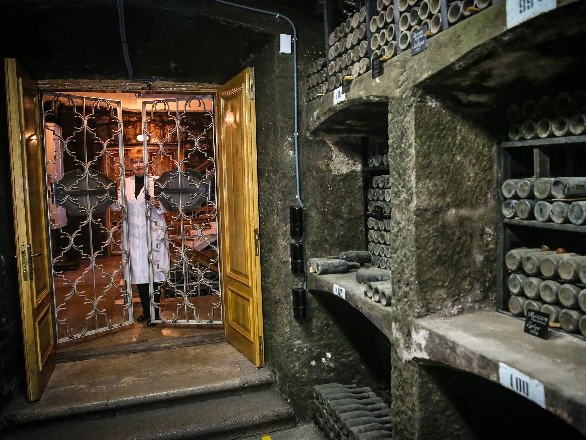 Massandra Collection comprises samples of every Massandra vintage, as well as some magnificent European wines from the personal collection of Tsar and Prince Golitzin including some extremely rare bottles incorporating the Tsar's personal seal. (Photo by Sergei Ilnitsky/EPA)