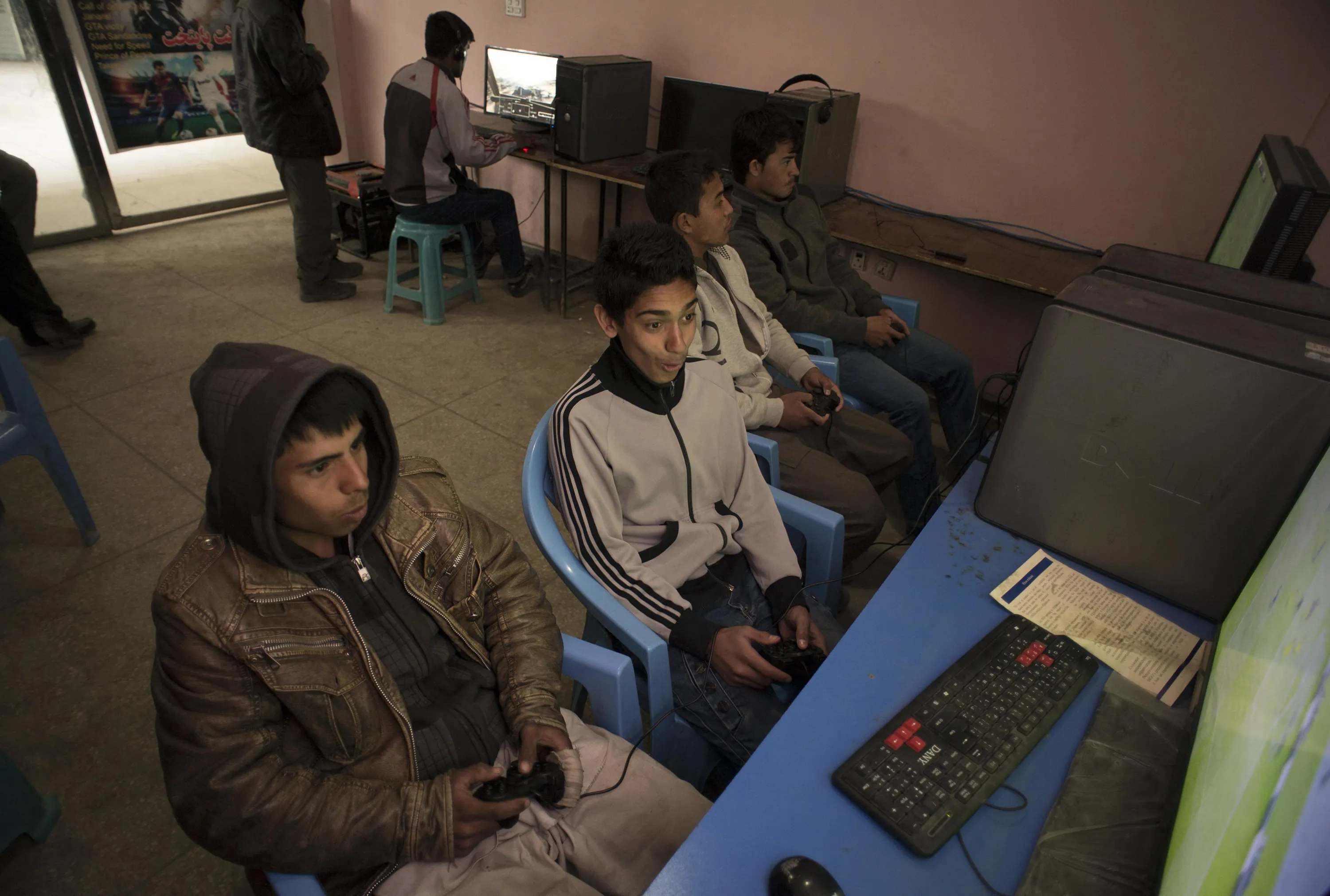 Boys play computer games at a market in Kabul March 2, 2014. (Photo by Morteza Nikoubazl/Reuters)
