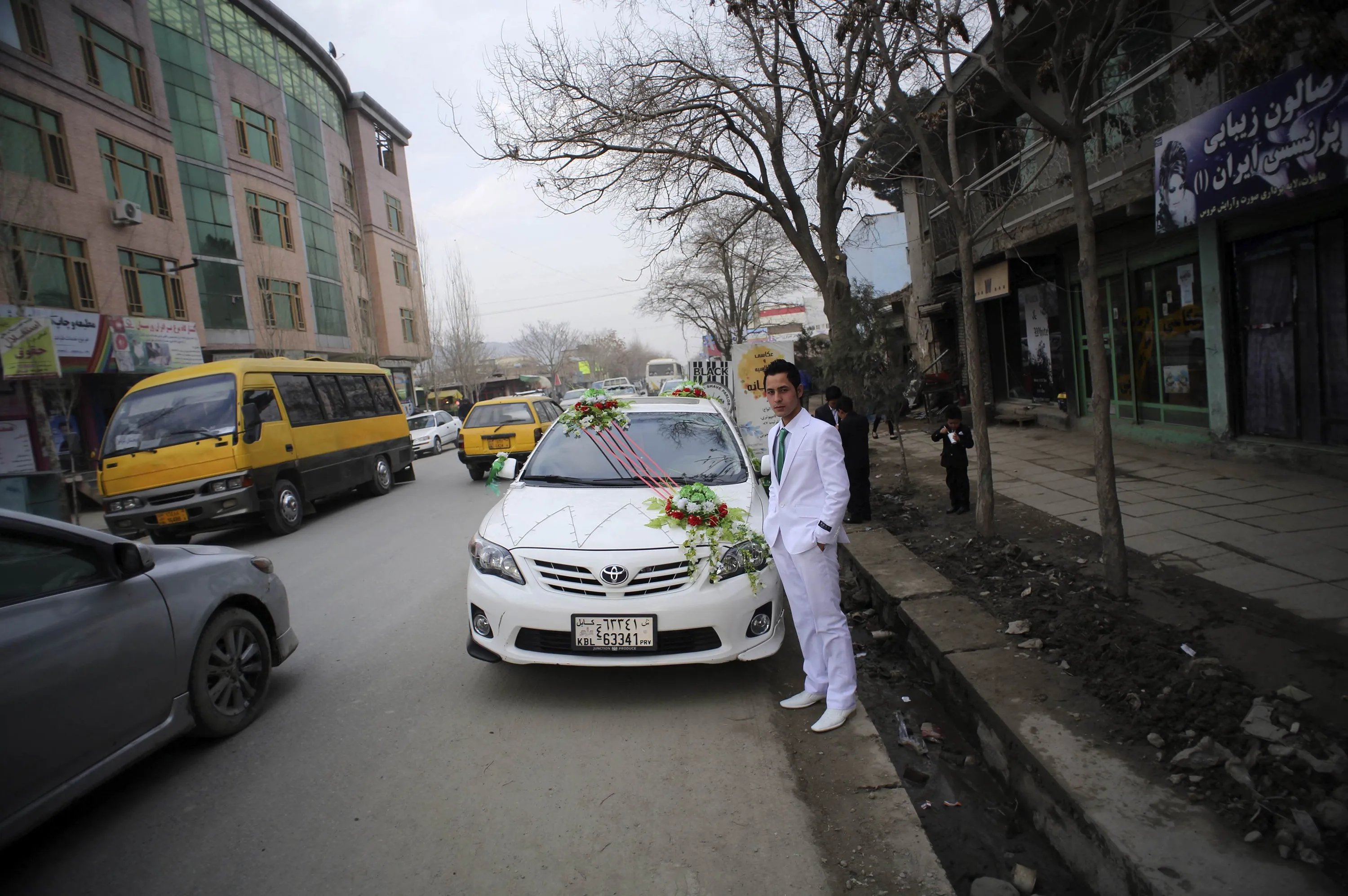 A groom stands next to his car as he poses for a photograph just after leaving a barber shop in Kabul March 6, 2014. (Photo by Morteza Nikoubazl/Reuters)