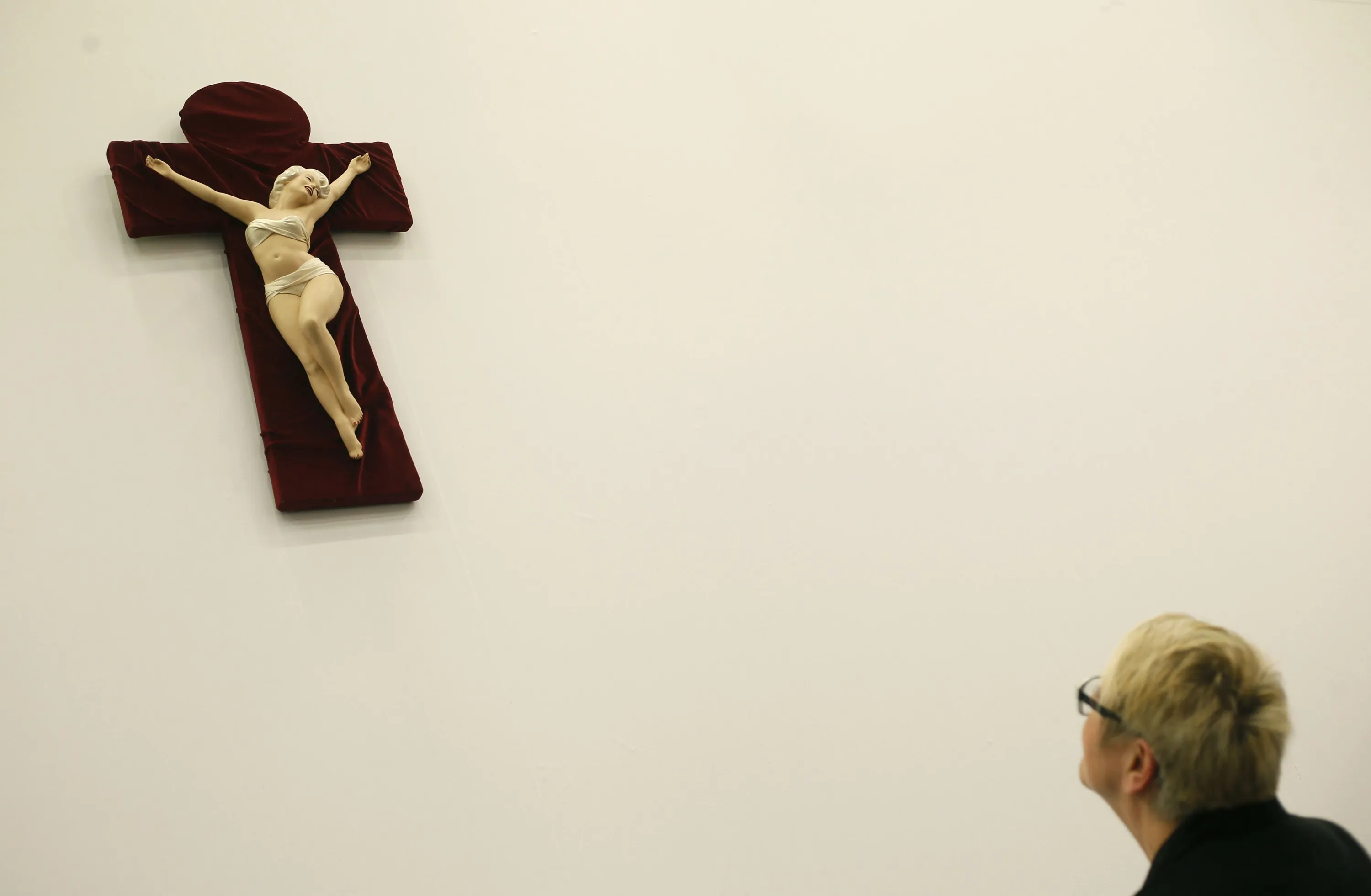 A woman looks at the artwork “Marilyn Crucifix” depicting U.S. actress Marilyn Monroe by Dutch artist Saskia de Boer at the “Art Cologne” art fair in Cologne April 9, 2014. The sculpture is on sale for 9,200 euros. Some 200 international exhibitors are taking part in the 48th Art Cologne, one of the world's leading fairs for contemporary art. (Photo by Wolfgang Rattay/Reuters)