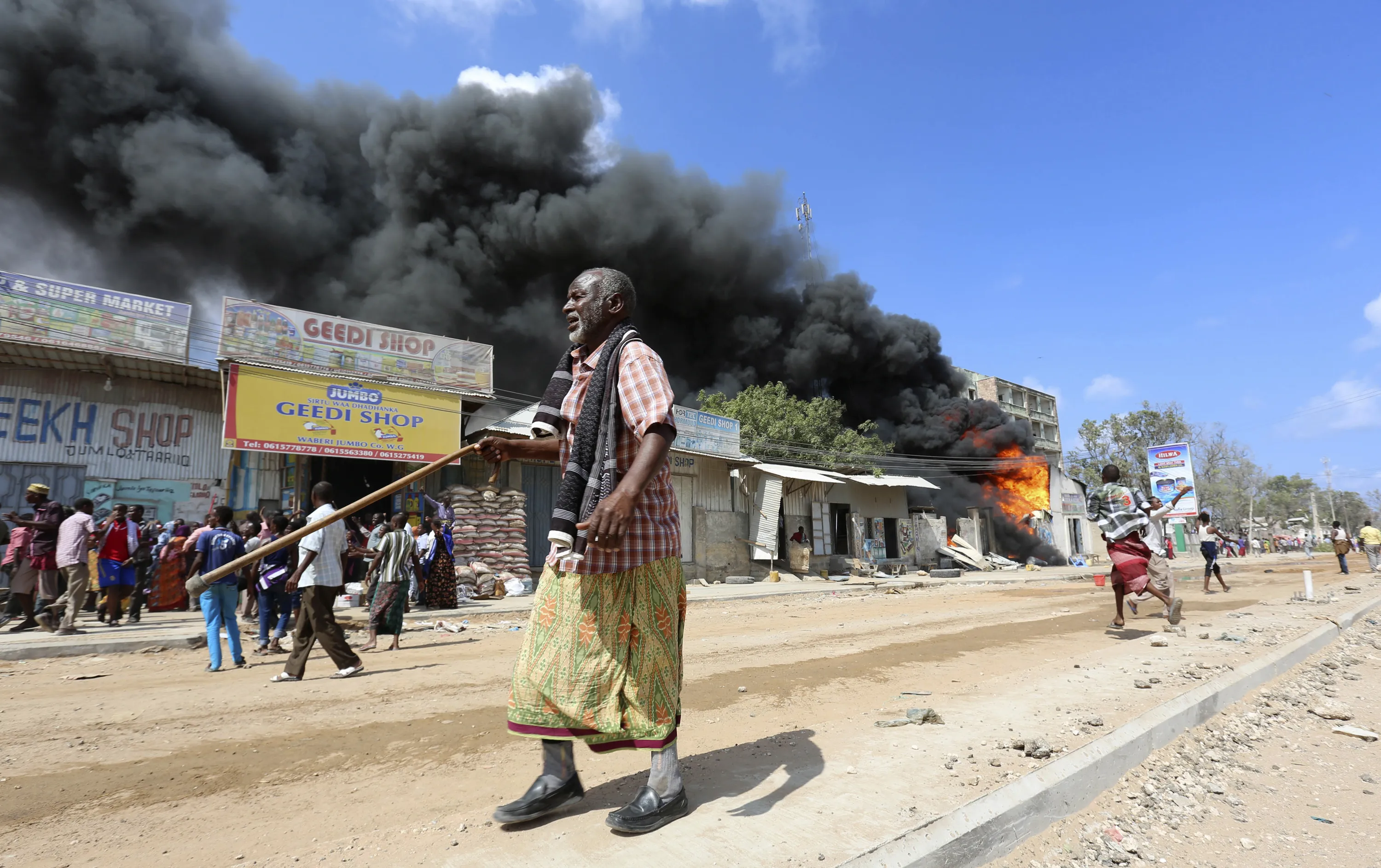 Somali traders attempt to evacuate their goods from their shops near a burning petrol station in Hodan district of Somalia's capital Mogadishu, April 10, 2014. (Photo by Feisal Omar/Reuters)