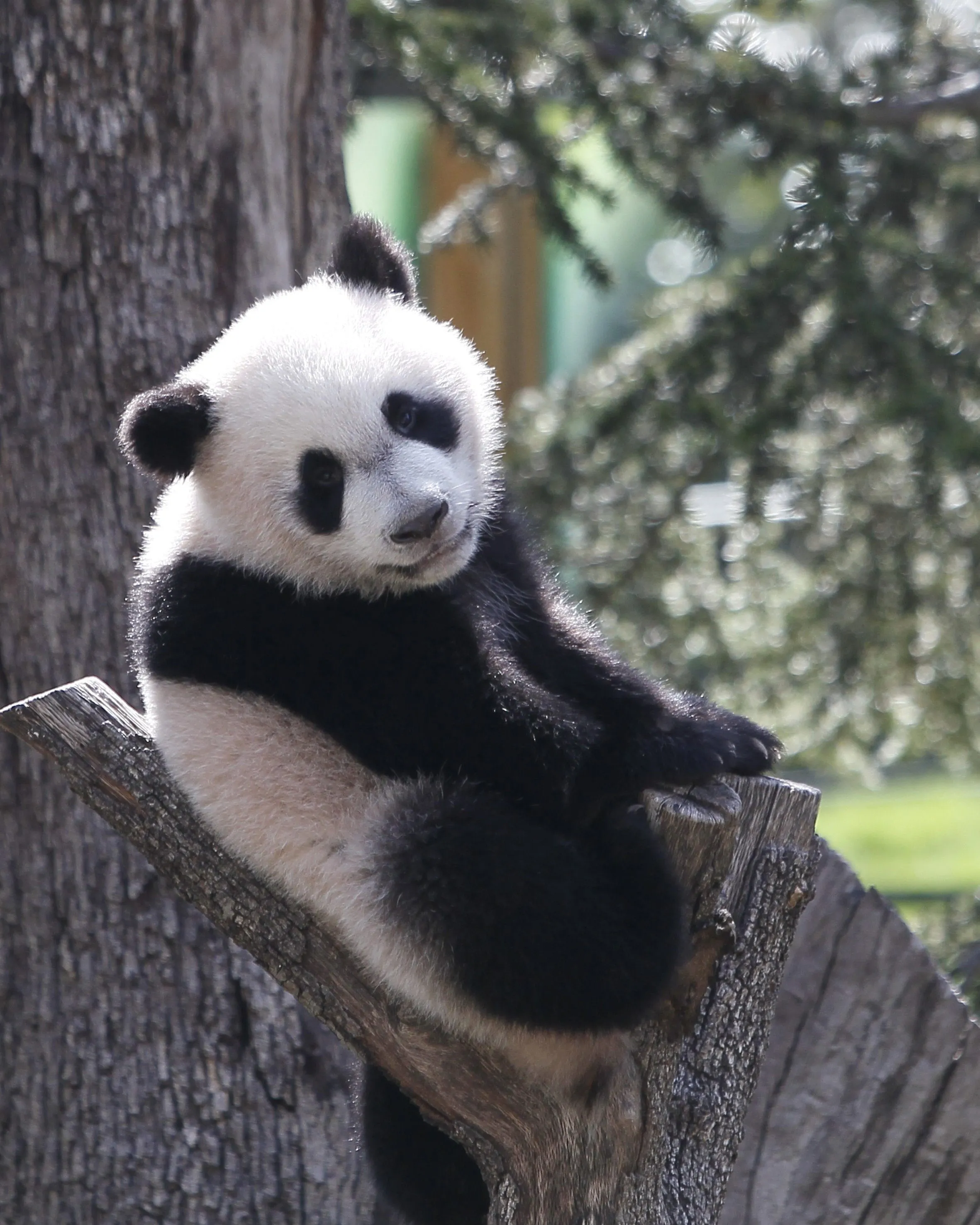 Xin Bao, the fourth giant panda cub born at the Zoo Aquarium in Madrid, is seen during his first walk outside the enclosure in Madrid, Spain, 09 April 2014. Xin Bao's presentation is held after six months of his birth, once the cub has had enough autonomy and strenght to stay outside. US Ambassador James Costos and Chinese Ambassador Zhu Bangzao attended the presentation. (Photo by Diego Garcia/EPA)