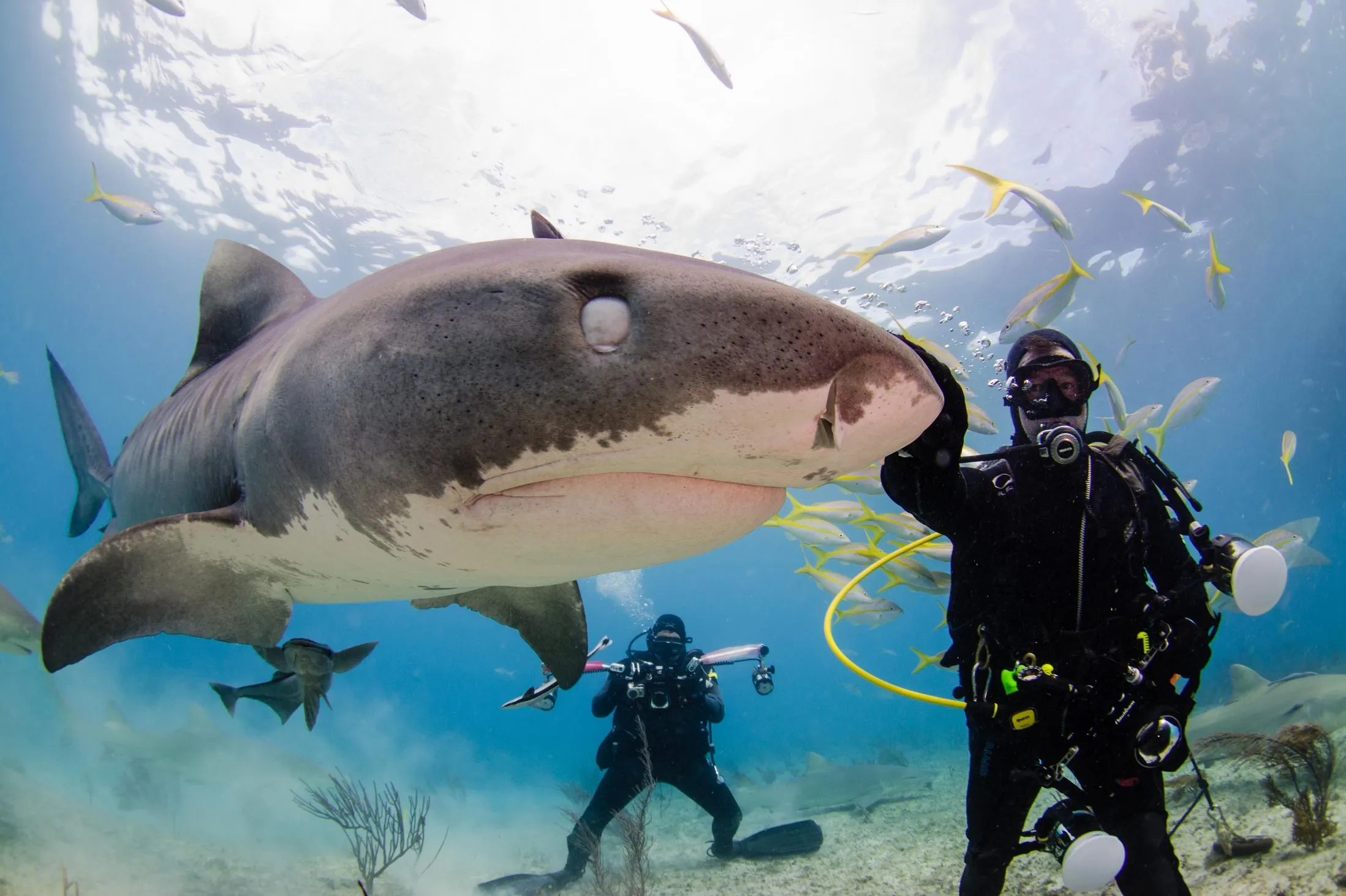 This is the fin-credible moment a cheeky shark photobombed a diver and flashed a toothy grin for the camera. (Photo by Caters News)