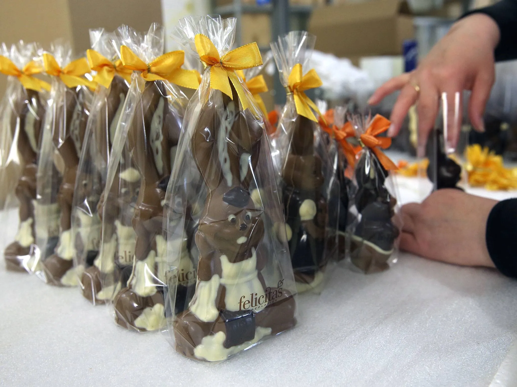 Chocolate Easter Bunny production at Confiserie Felicitas in Germany