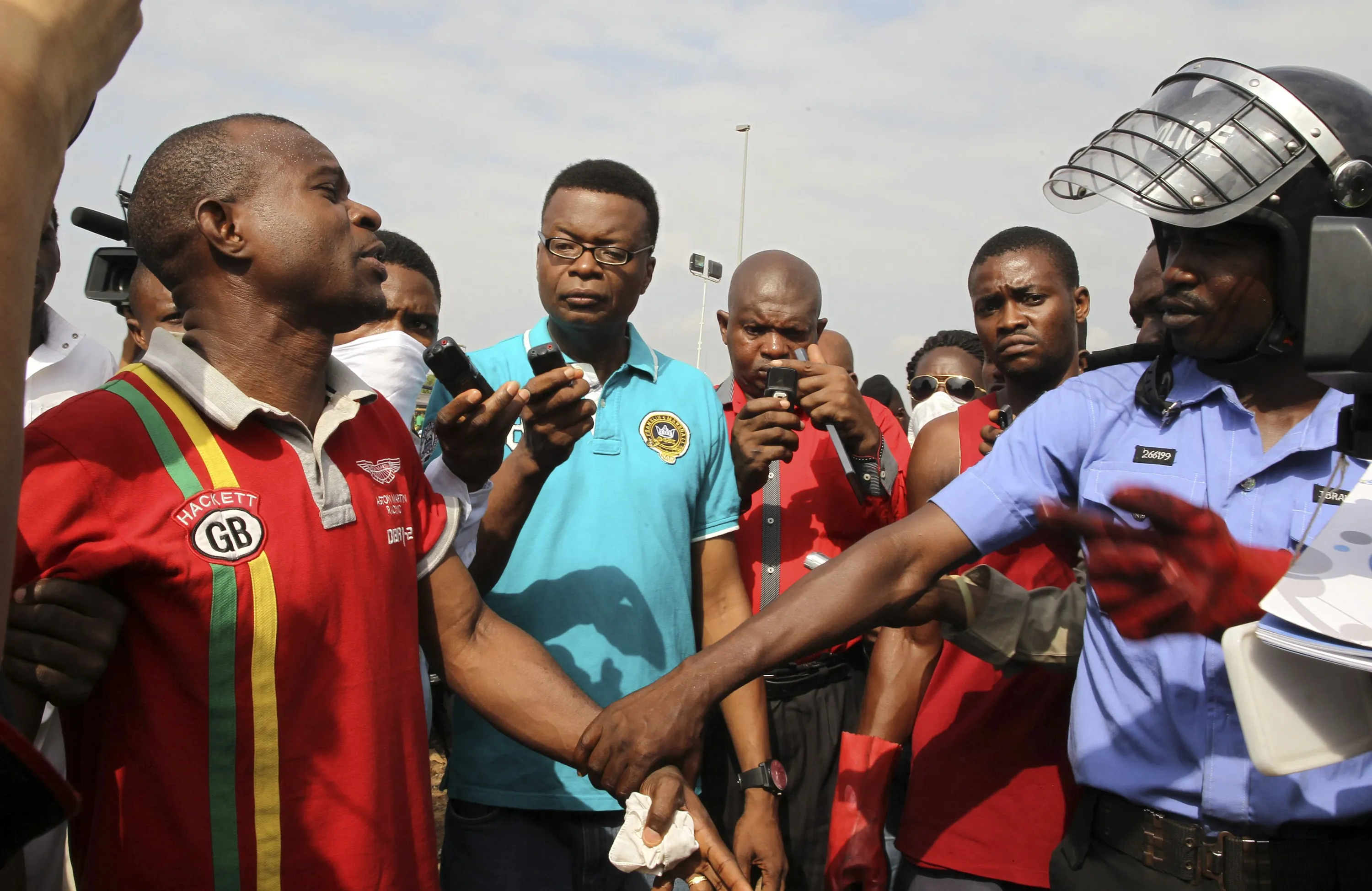 A policeman holds the hand of a man who lost his wife at the scene of a bomb blast at the Nyayan, in Abuja April 14, 2014. (Photo by Afolabi Sotunde/Reuters)