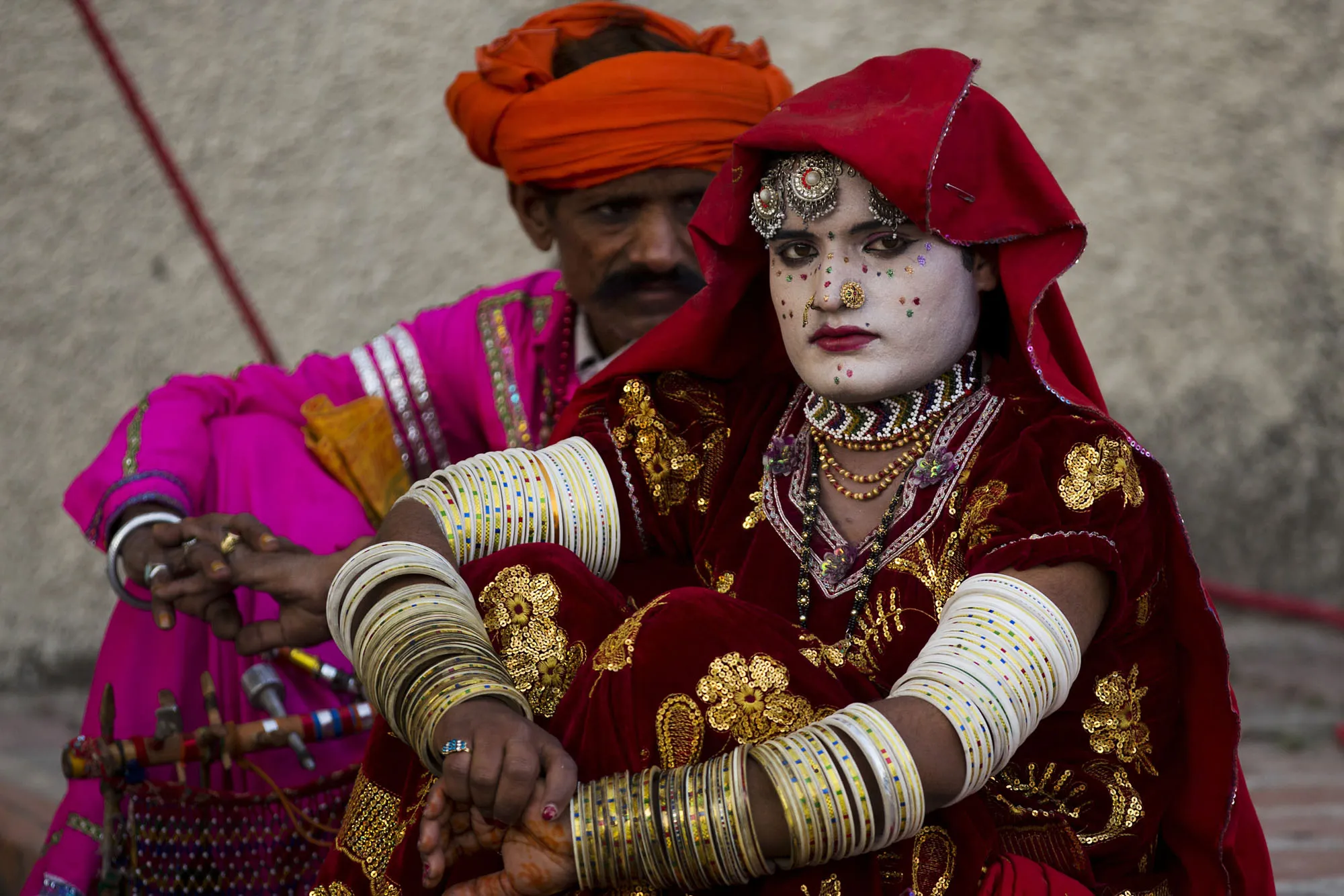 A Pakistani couple from the Bheel nomad community attend a folk heritage festival in Islamabad, Pakistan, Monday, April 14, 2014. The festival was organized to emphasize the importance of dying folk culture in Pakistan. (Photo by B. K. Bangash/AP Photo)