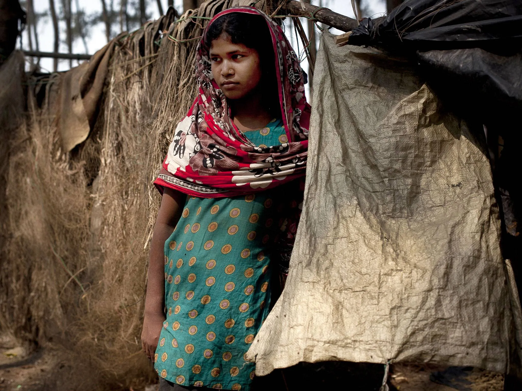 12 year old Nurana stands outside her home in the Shamalapur Rohingya refugee settlement in Chittagong district. She escaped to Bangladesh from Myanmar with her parents and 6 siblings. (Photo by Getty Images/Stringer)
