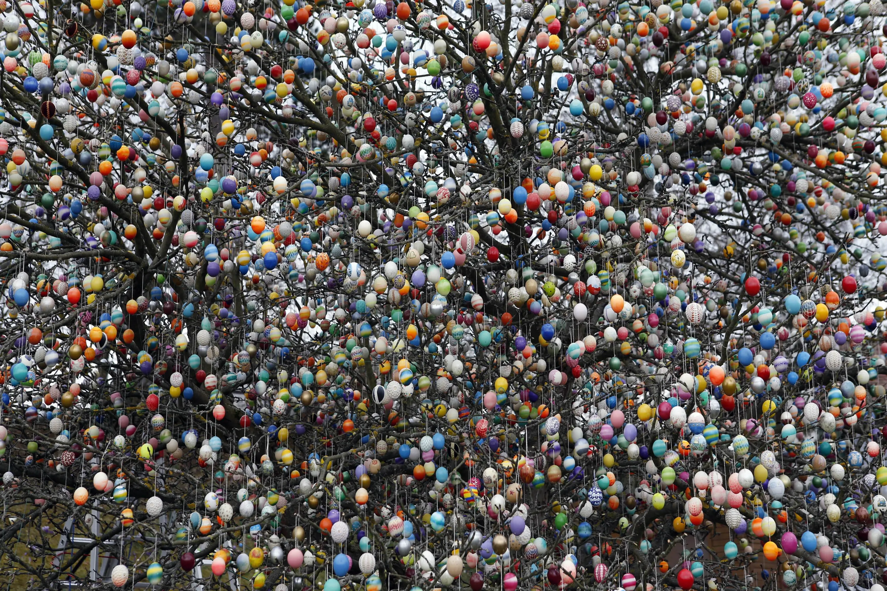 Easter eggs adorn an apple tree in the garden of the summerhouse of German pensioners Christa and Volker Kraft, in the eastern German town of Saalfeld, March 19, 2014. (Photo by Fabrizio Bensch/Reuters)