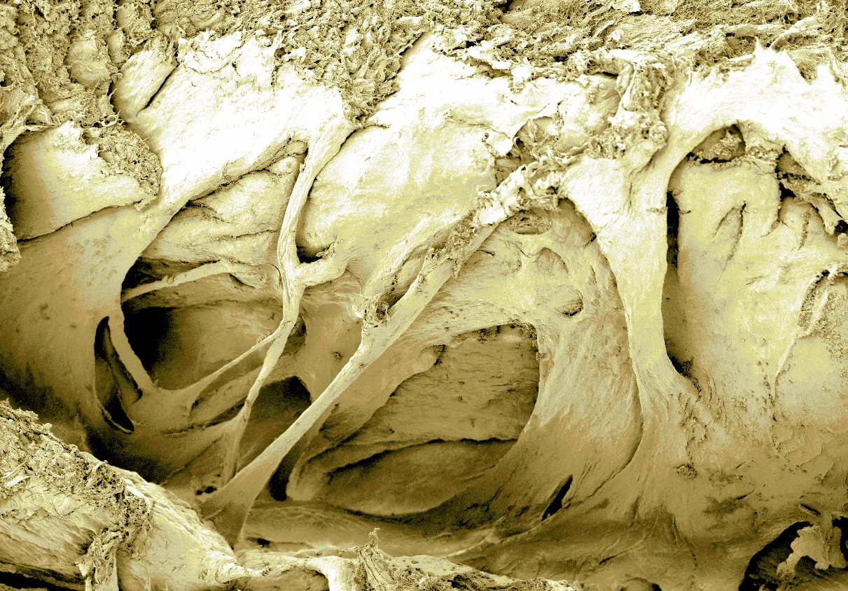 Micro or Macro? It's micro: these cave-like organic structures are the muscle fibres from a sparrow's heart. (Photo by P. Kelly)