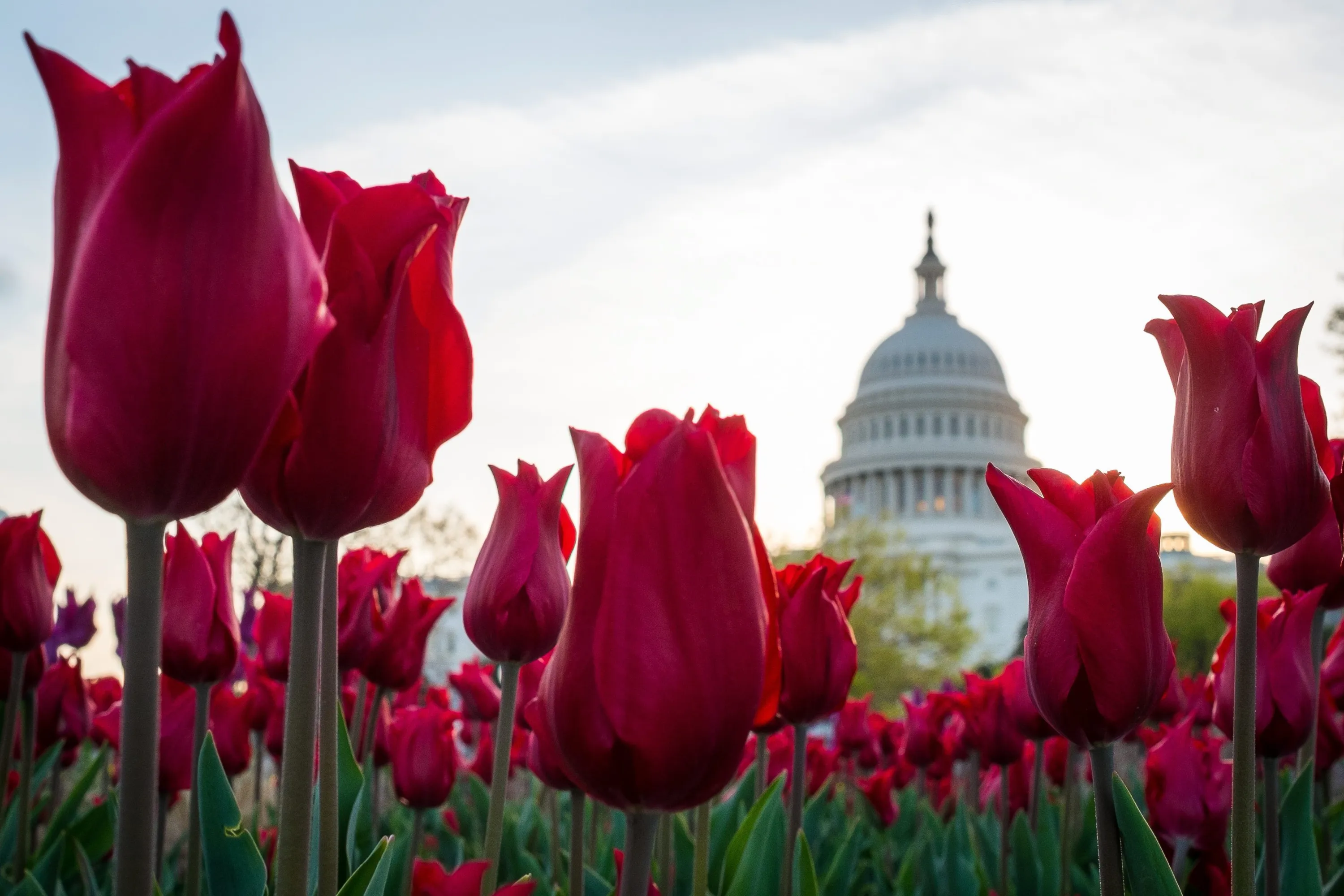 Tulips bloom in front of the Capitol in Washington, Tuesday, April 22, 2014. The annual burst of color around the Nation's Capital is a sure sign that spring has finally arrived. (Photo by J. David Ake/AP Photo)