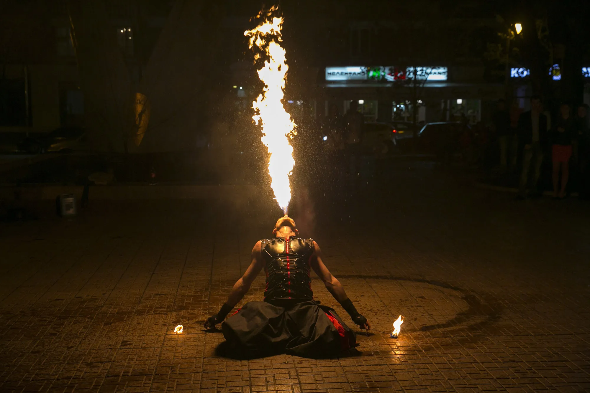 A street performer breathes fire during a show in Donetsk, eastern Ukraine April 21, 2014. (Photo by Baz Ratner/Reuters)