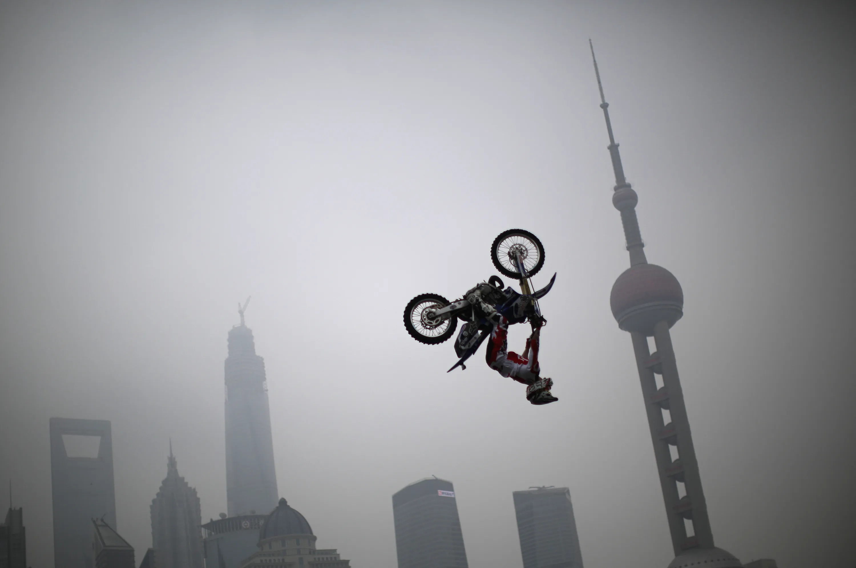 Michael Norris of Australia performs during a presentation of the World Extreme Games in Shanghai April 27, 2014. The games will be held in Shanghai from April 30 to May 3. (Photo by Carlos Barria/Reuters)