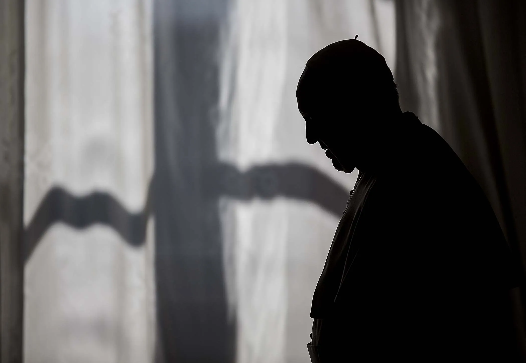 Pope Francis leaves after a meeting with Prime Minister of Albania Edi Rama and his wife Linda, at the Vatican, on April 24, 2014. (Photo by Alessandra Tarantino/Pool)