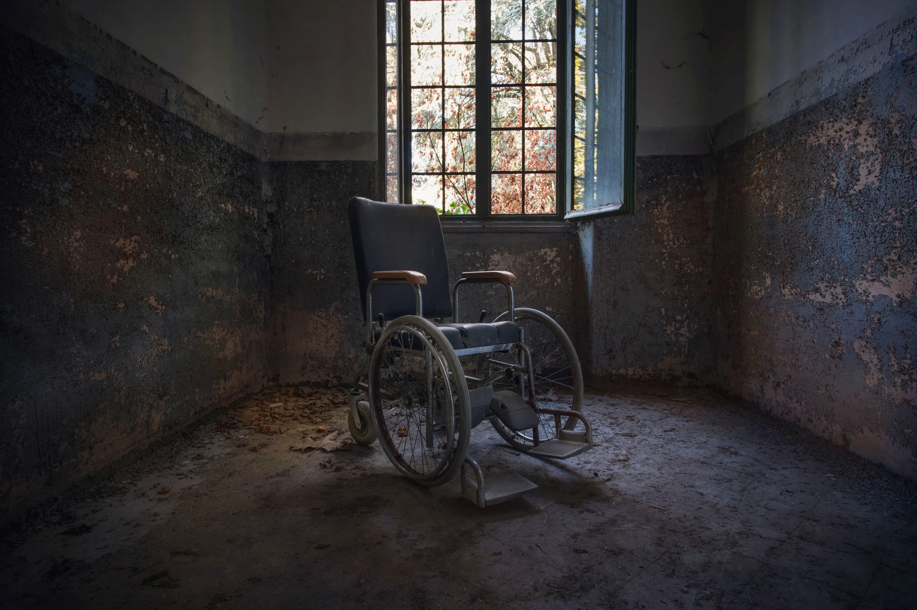 An abandoned wheelchair in Ospedale. (Photo by Gaz Mather/Cater News)
