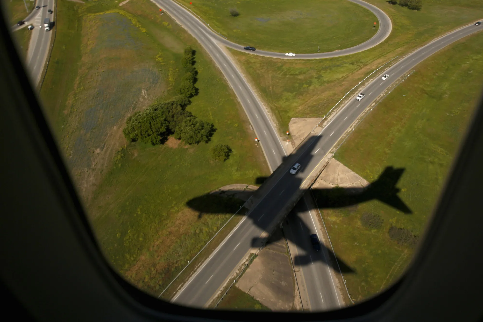 Air Force One casts a shadow upon its arrival n Austin, Texas April 10, 2014. U.S. President Barack Obama will speak at a Civil Rights Summit to commemorate the 50th anniversary of the signing of the Civil Rights Act at the LBJ Presidential Library in Austin on Thursday. (Photo by Kevin Lamarque/Reuters)