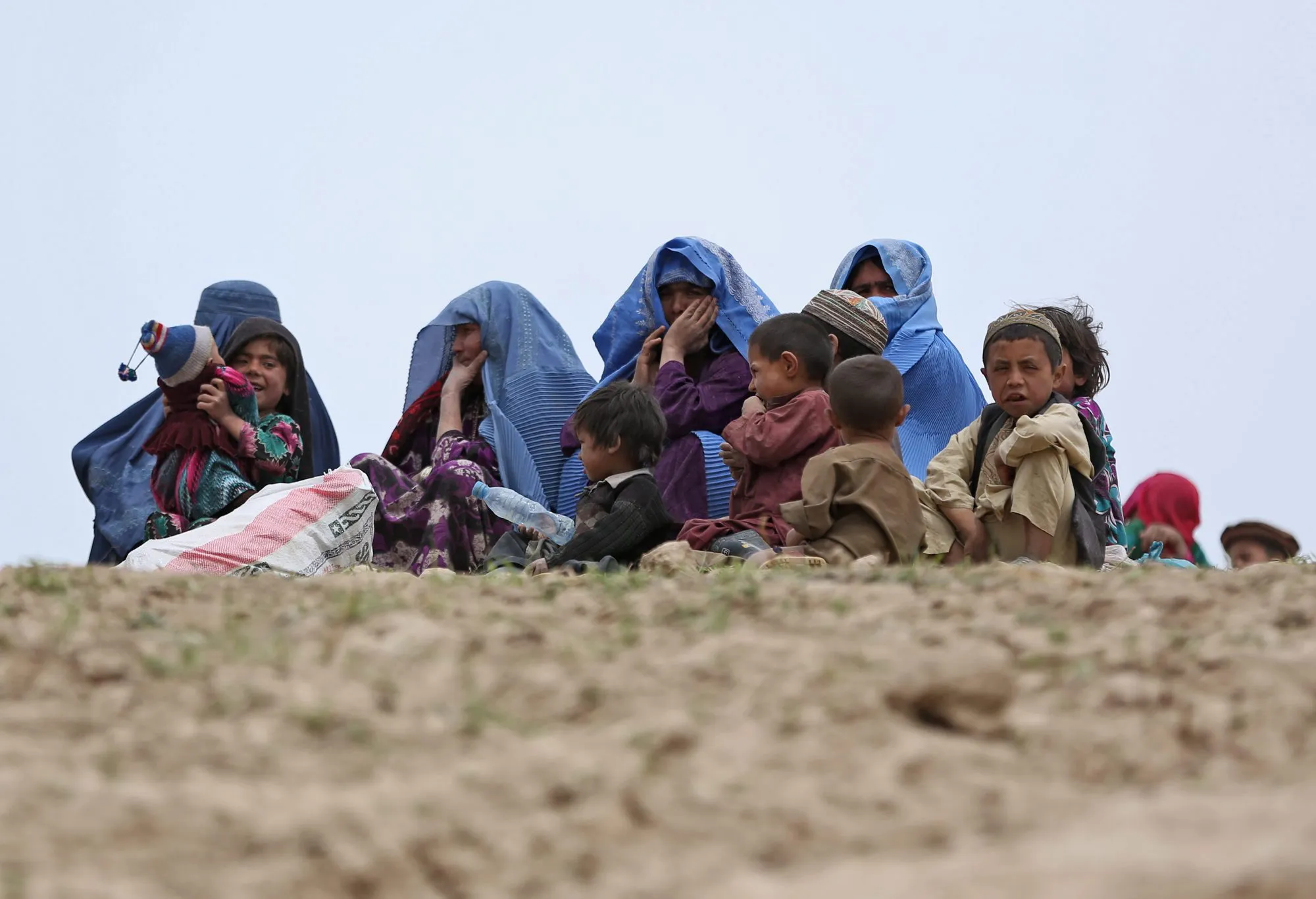 In this Sunday, May 4, 2014 photo, Survivors sit with their possessions near the site of Friday's landslide that buried Abi-Barik village in Badakhshan province, northeastern Afghanistan. Stranded and with no homes, many of the families have struggled to get aid. Some have gone to nearby villages to stay with relatives or friends, while others have slept in tents provided by aid groups. (Photo by Massoud Hossaini/AP Photo)
