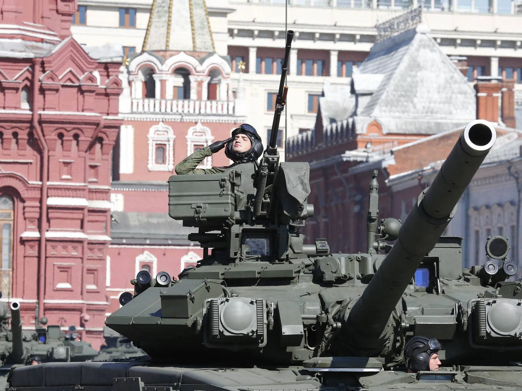A Russian serviceman aboard a tank salutes during the Victory Day parade in Moscow's Red Square, on May 9, 2014. (Photo by Grigory Dukor/Reuters)