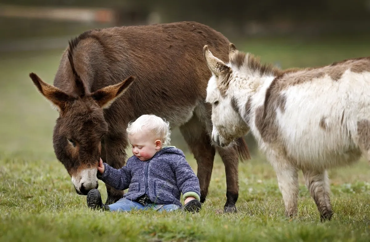 15-month-old Jack Johnston gets caught up in a cuddle sandwich with micro miniature donkeys called 'Snuggle Pot' and 'Livingstone' at Amelia Rise Donkeys. (David Caird / Newspix / Rex USA) 15-month-old Jack Johnston plays with micro miniature donkeys called 'Snuggle Pot' and 'Livingstone' at Amelia Rise Donkeys. (David Caird / Newspix / Rex USA) 15-month-old Jack Johnston in sniffed by a micro miniature donkey called 'Snuggle Pot' at Amelia Rise Donkeys. (David Caird / Newspix /Rex USA) 15-month-old Jack Johnston goes for a short walk in the paddock with micro miniature donkeys called 'Snuggle Pot' and 'Livingstone' at Amelia Rise Donkeys. (David Caird / Newspix / Rex USA) 15-month-old Jack Johnston plays with micro miniature donkeys called 'Snuggle Pot' and 'Livingstone' at Amelia Rise Donkeys. (David Caird / Newspix / Rex USA)