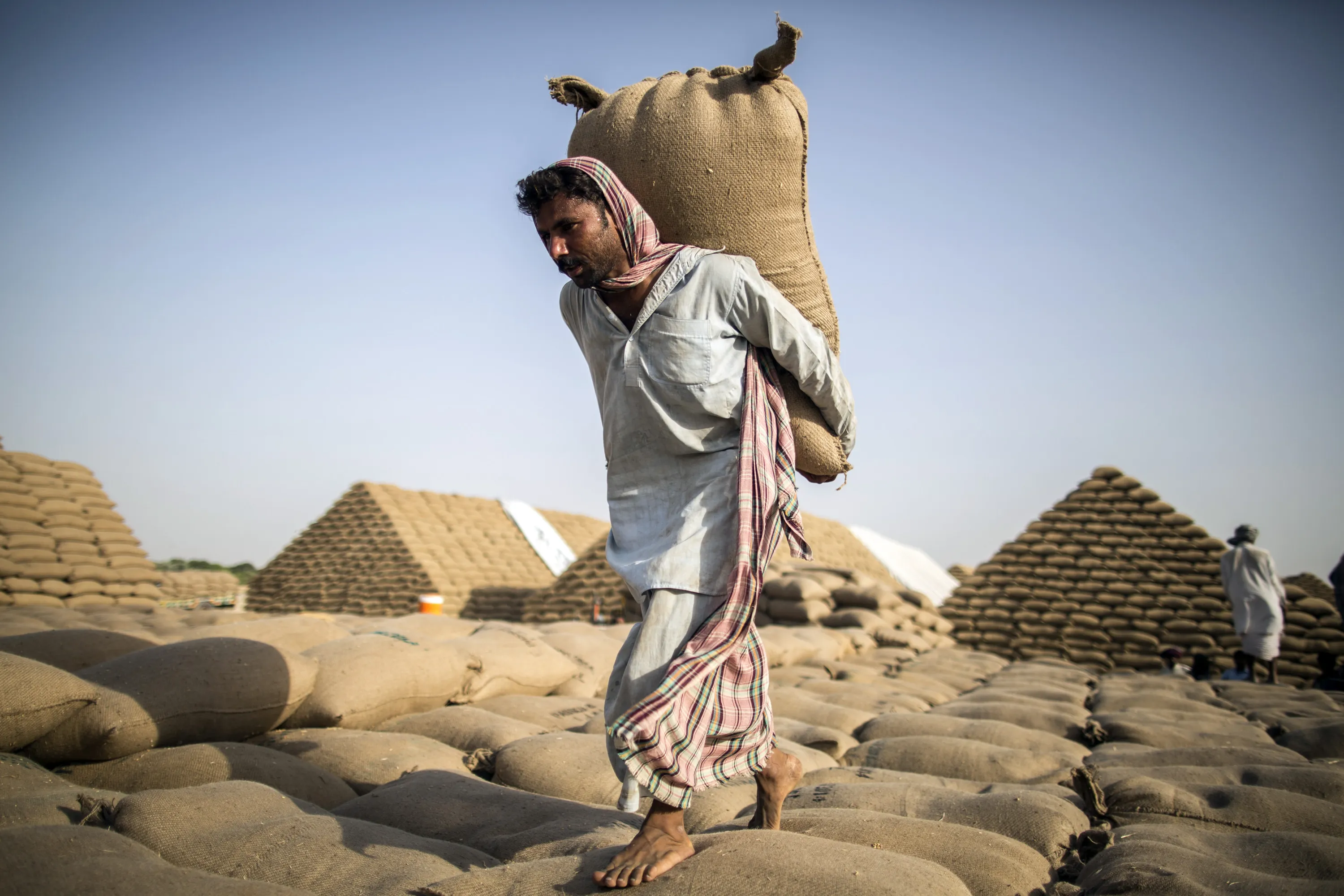 A Pakistani labourer carries a sack of wheat to build a pyramid of wheat sacks used to store wheat supplies near Multan in South Punjab province May 12, 2014. (Photo by Zohra Bensemra/Reuters)