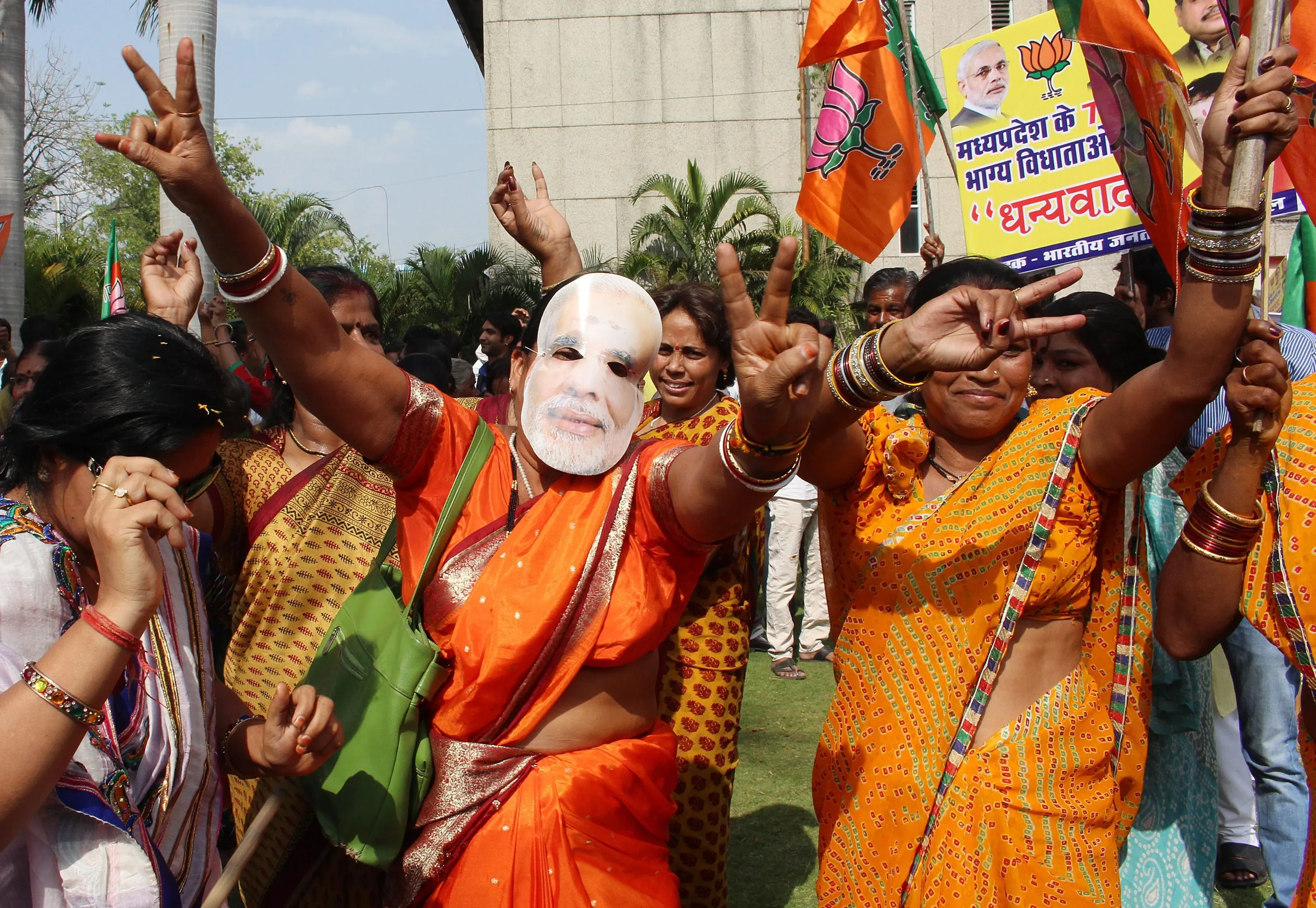 Bharatiya Janata Party supporters celebrate their party's victory in Bhopal, on May 16, 2014. (Photo by Sanjeev Gupta/EPA)