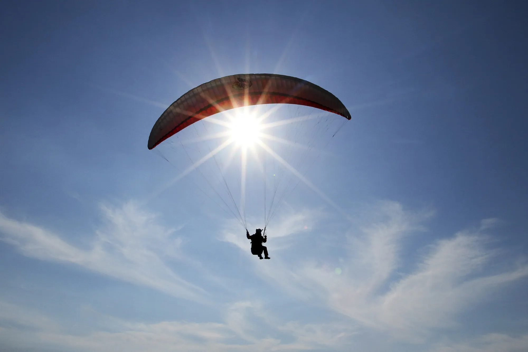 A paraglider flies during the annual Balkan paragliding competition over the city of Vlore, some 150 km (94 miles) from Tirana, May 7, 2014. (Photo by Arben Celi/Reuters)