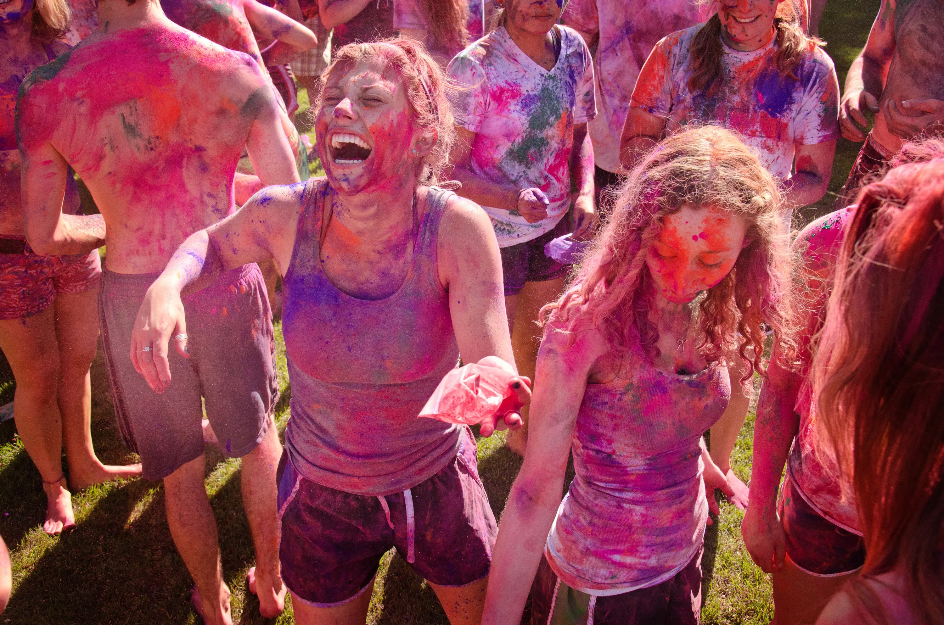 Students at Whitman College in Walla Walla, Wash., celebrate the end of the school year with a Holi Festival, on May 20, 2014. Also known as the festival of colors, Holi is a spring festival that originated as a Hindu religious event. Celebrants throw and rub colorful powders and water on each other. (Photo by Greg Lehman/Walla Walla Union-Bulletin via AP Photo)