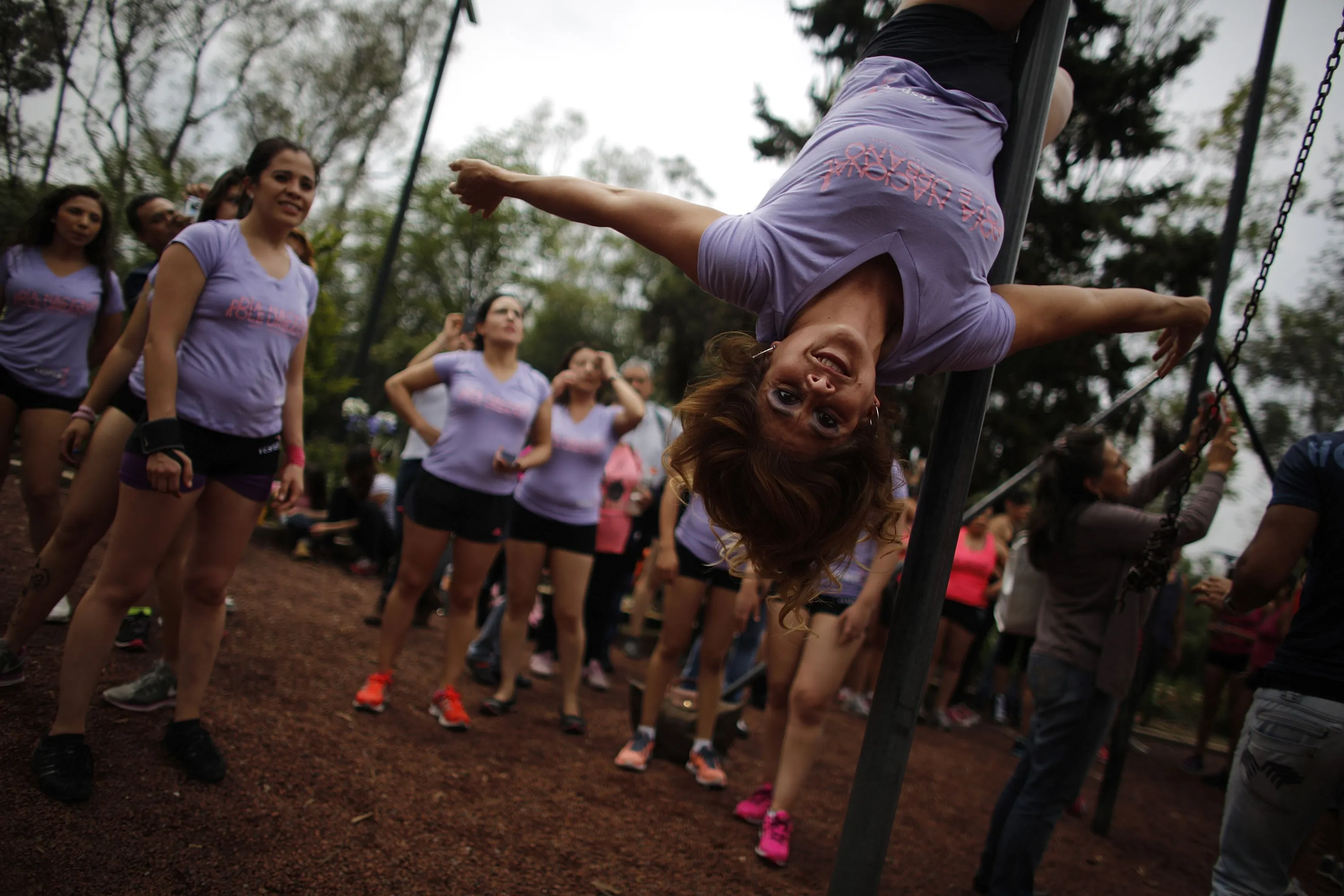 A woman performs a pole dancing routine during the national day celebration of “Urban Pole” dance at a park in Mexico City June 8, 2014. (Photo by Tomas Bravo/Reuters)