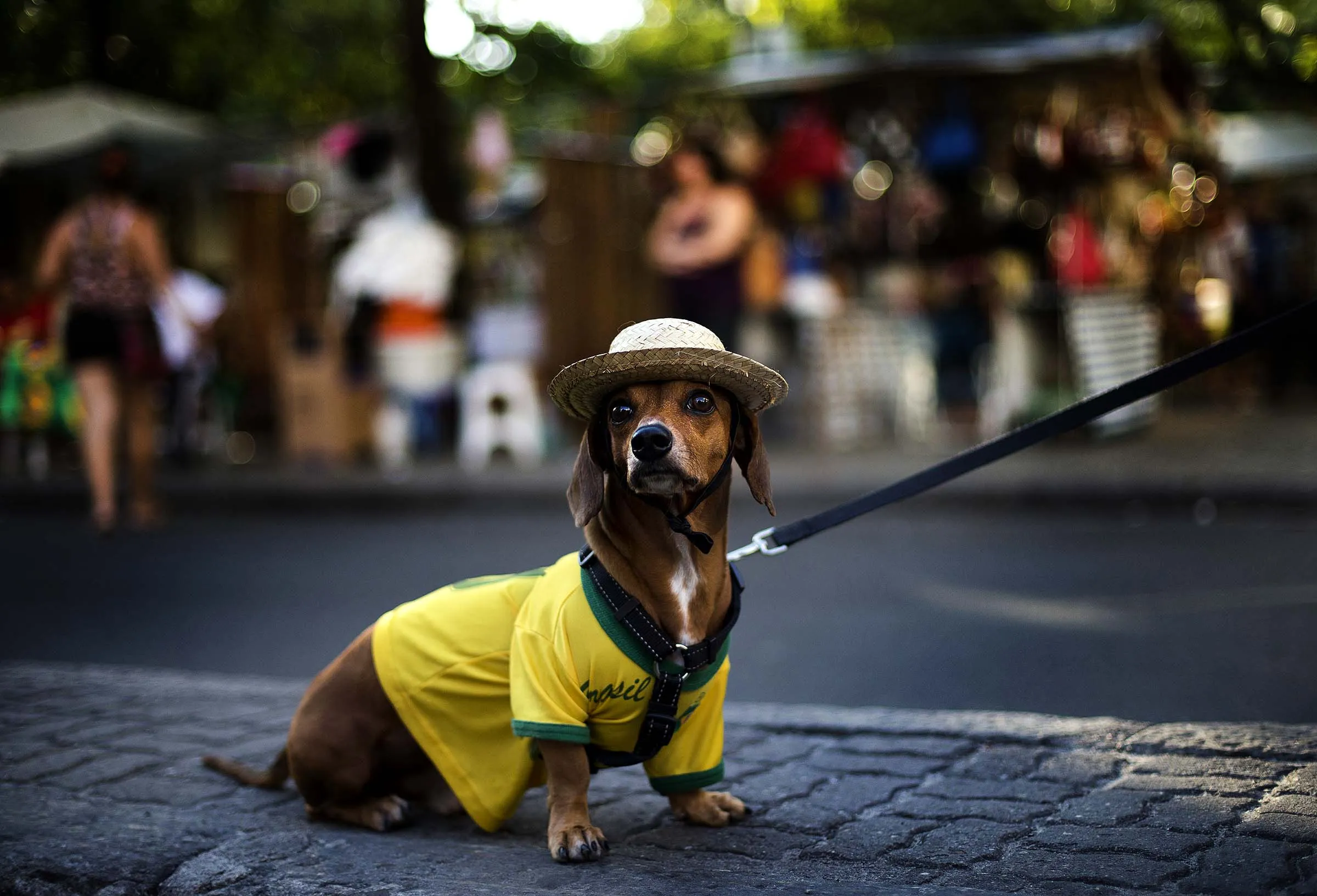 Caique, 7, wears a Brazilian national soccer jersey while he sits on a sidewalk in Rio de Janeiro. (Photo by Silvia Izquierdo/Associated Press)