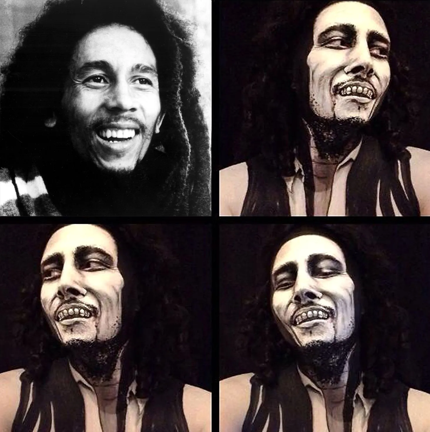 Bob Marley. 40-year-old London-based makeup artist, Maria Malone-Guerbaa has the ability to transform herself into any celebrity or creature using only her basic makeup essentials. Maria used only make up and face paints to create the illusion of Nelson Mandela, Britain's Queen Elizabeth II, and many other A-list celebrities. (Photo by Maria Malone-Guerbaa/Rex Features USA)
