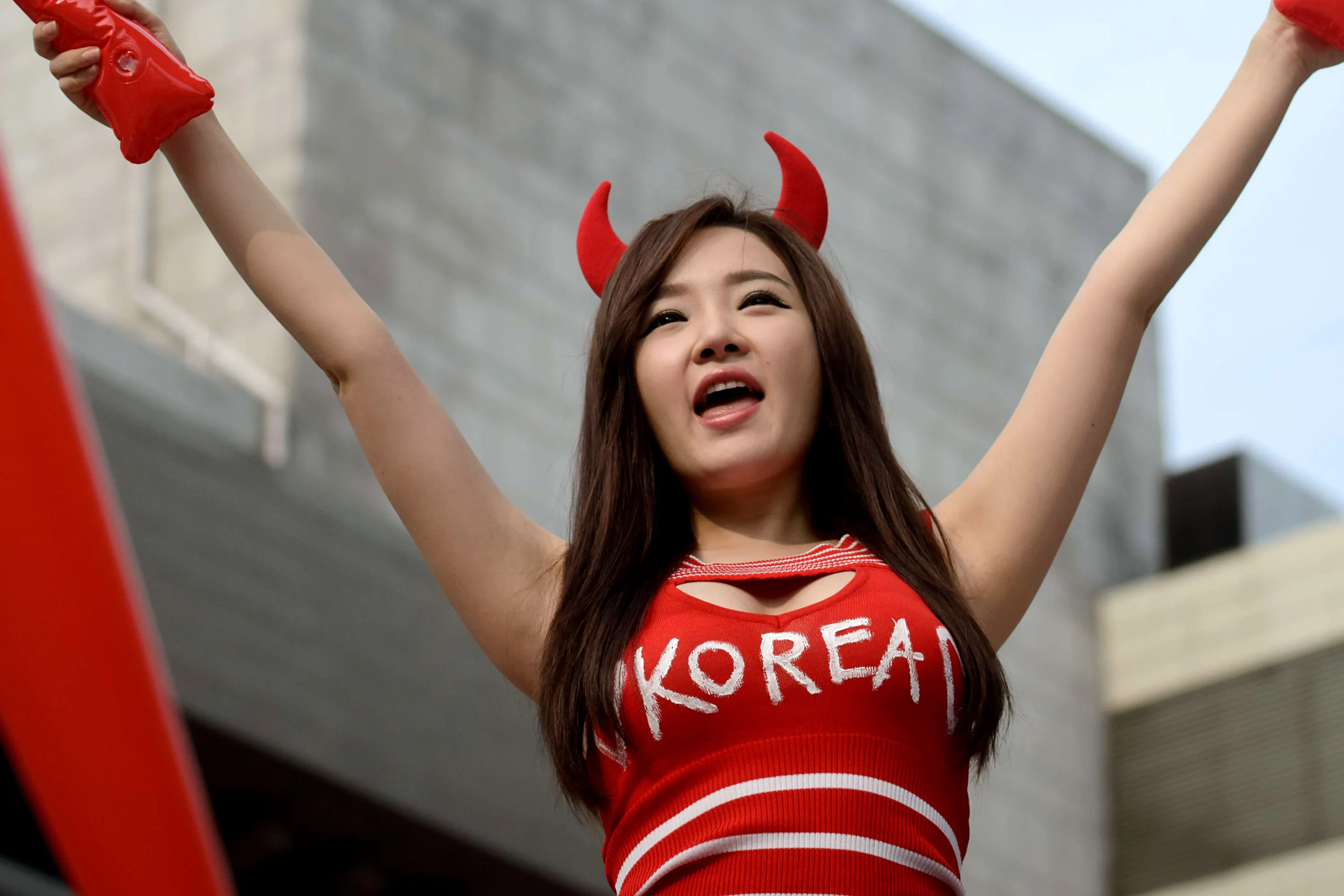 A South Korean football fan reacts during a public screening in Seoul of the South Korea vs Russia football match at the 2014 World Cup in Brazil, early on June 18, 2014. Giant television screens were erected around Seoul ahead of the country's first game at the 2014 Brazilian World Cup. South Korea drew with Russia leaving both countries trailing Belgium who head the Group H table after beating Algeria 2-1 earlier. (Photo by Ed Jones/AFP Photo)
