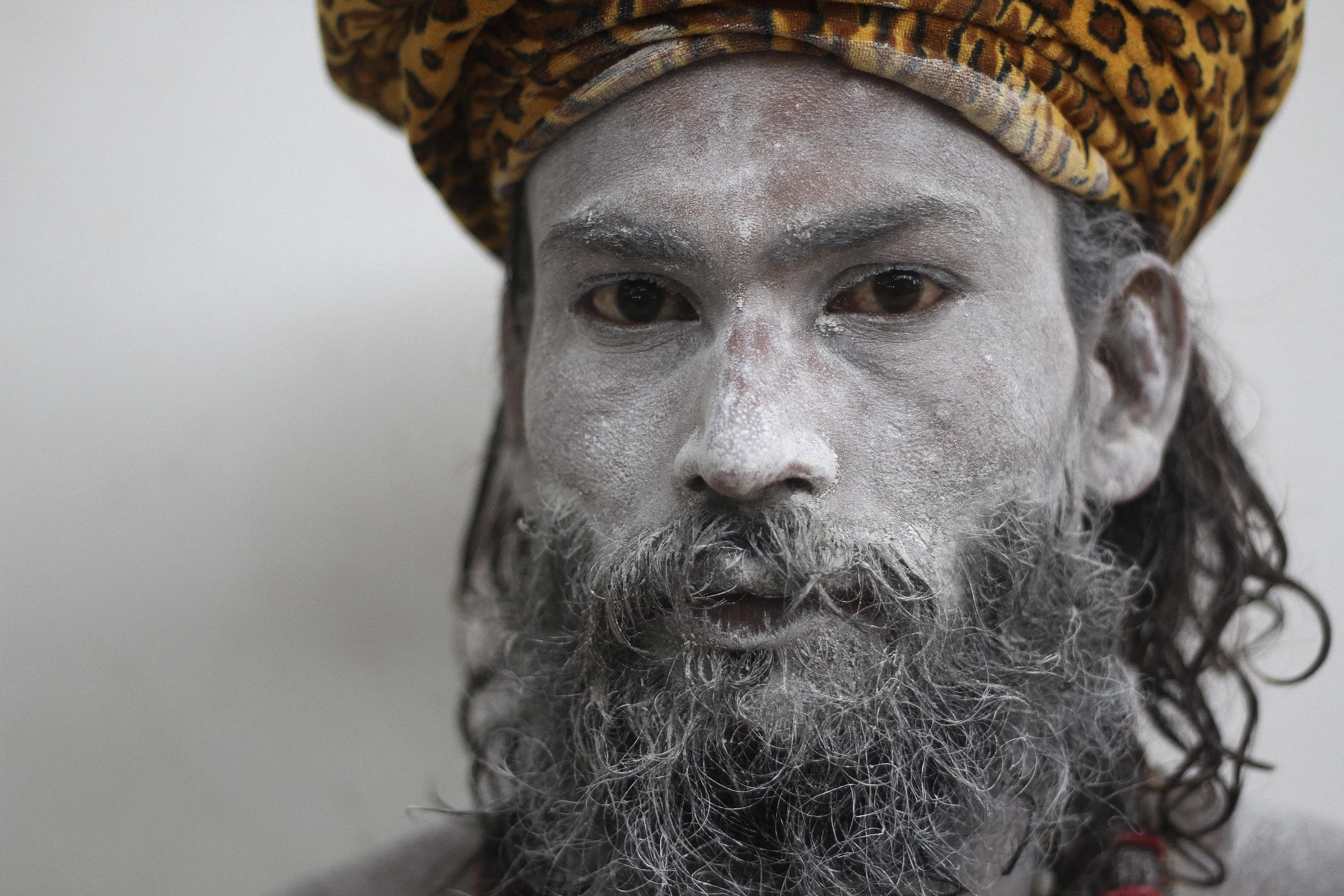 An Indian Hindu holy man who has his face smeared with ash looks at the camera during the Ambubasi festival at the Kamakhya Hindu temple in Gauhati, India, Sunday, June 22, 2014. The annual festival where hundreds of holy men from an esoteric form of Hinduism, gather to perform rituals at the temple begins on June 22. (Photo by Anupam Nath/AP Photo)
